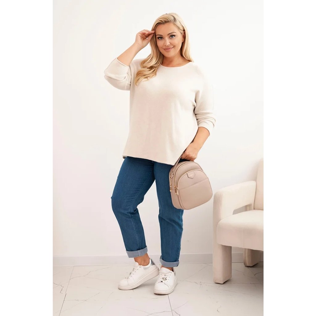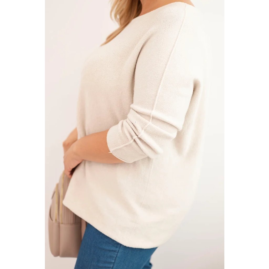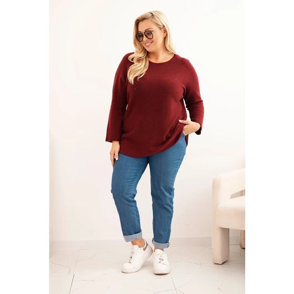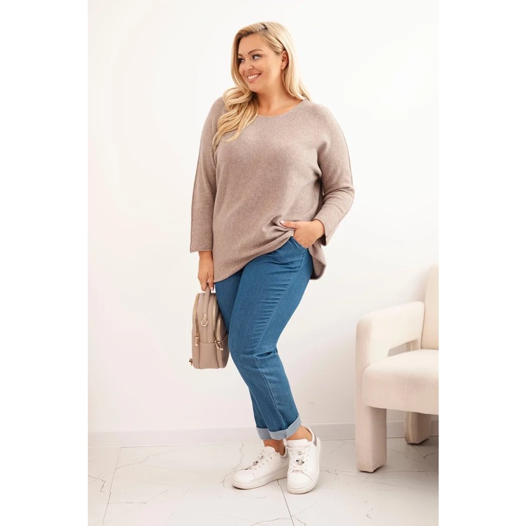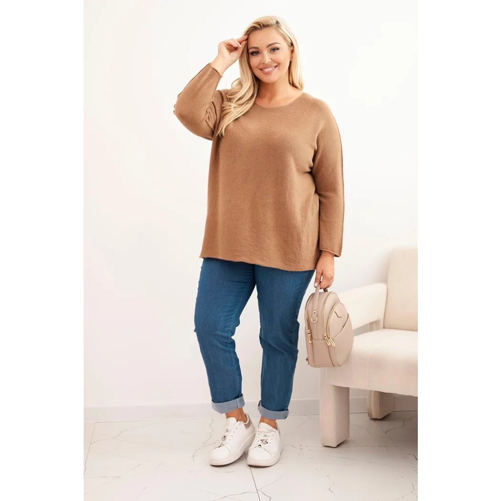 Hľadáte pohodlný a zároveň štýlový sveter na každodenné nosenie? Tento dámsky sveter vo väčších veľkostiach je ideálnou voľbou! Vyrobený z príjemného na dotyk úpletu, zaisťuje voľnosť pohybu a vysoký komfort nosenia. Voľný, jednoduchý strih s jemným lodičkovým výstrihom sa skvele prispôsobuje postave, zakrýva nedokonalosti a zdôrazňuje ženské krivky.