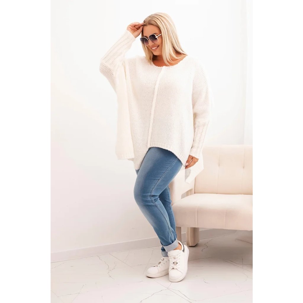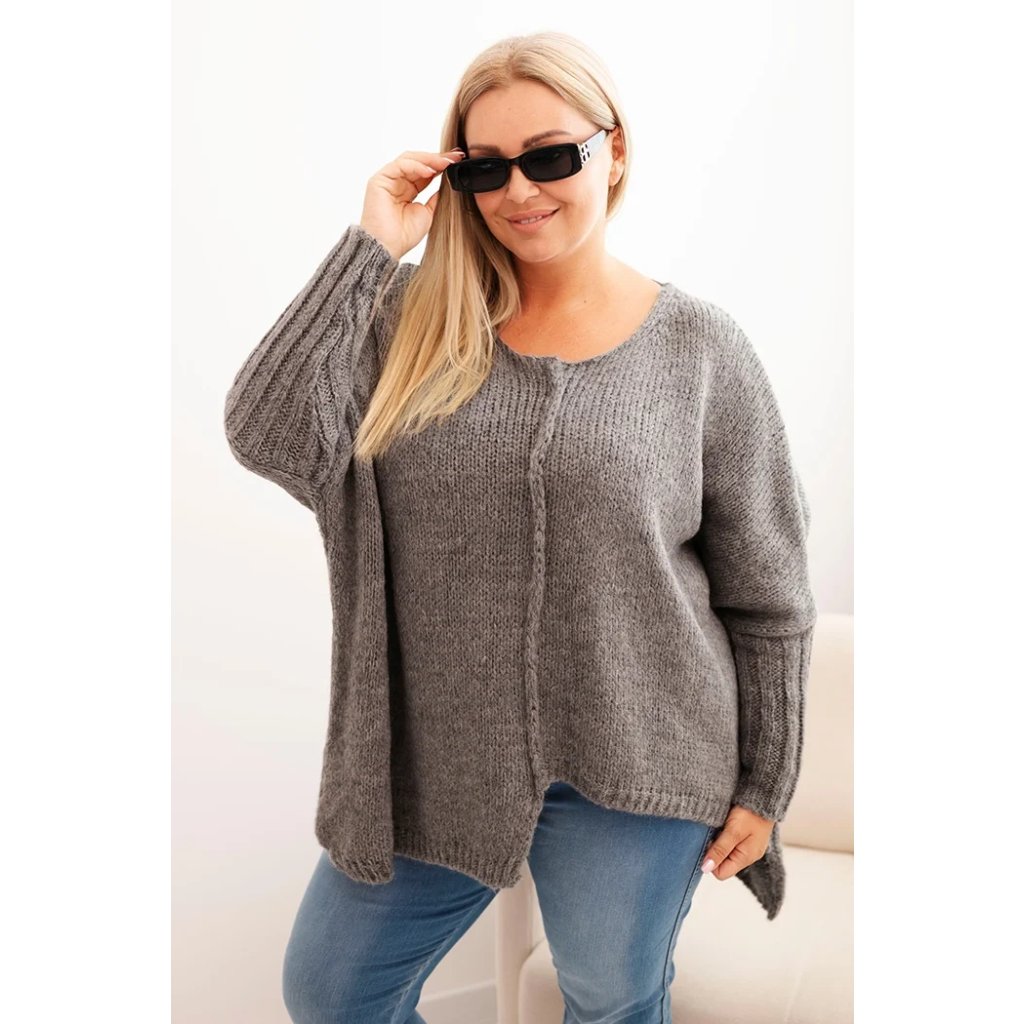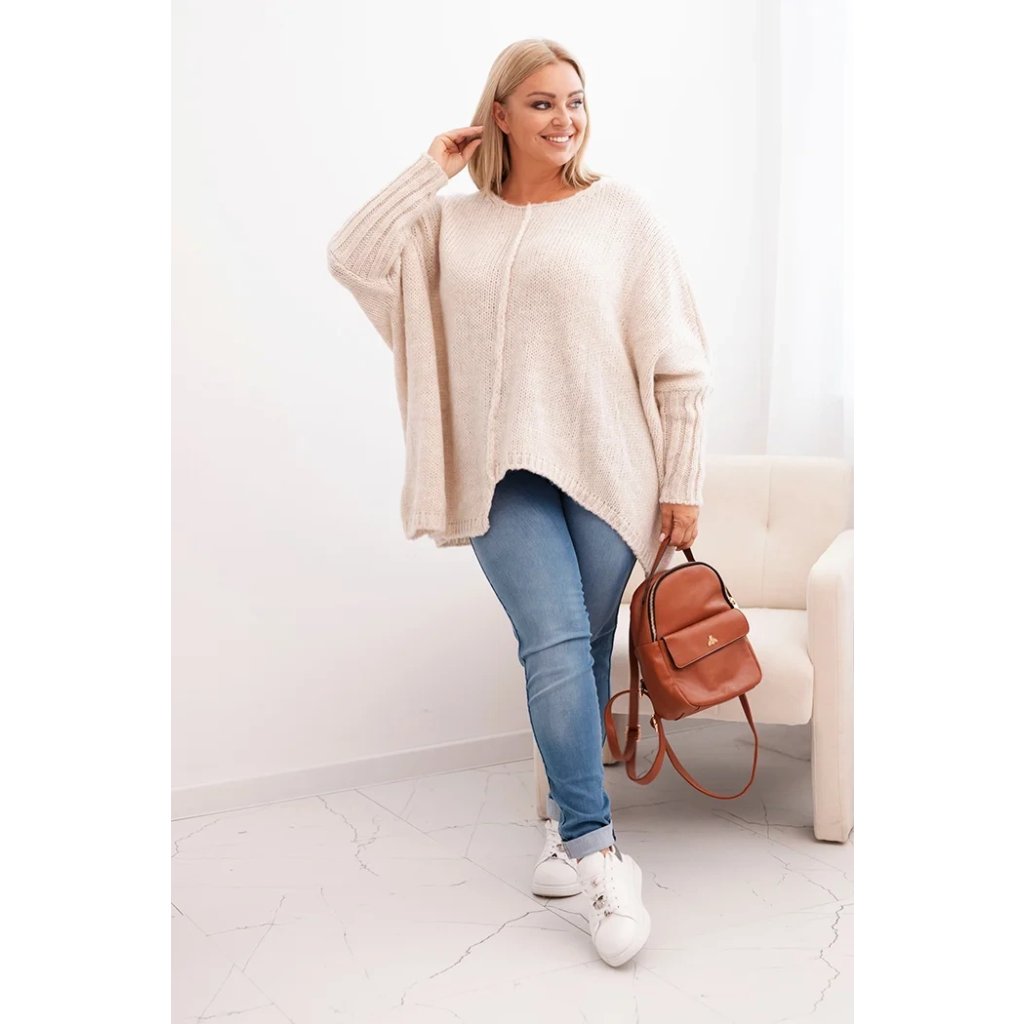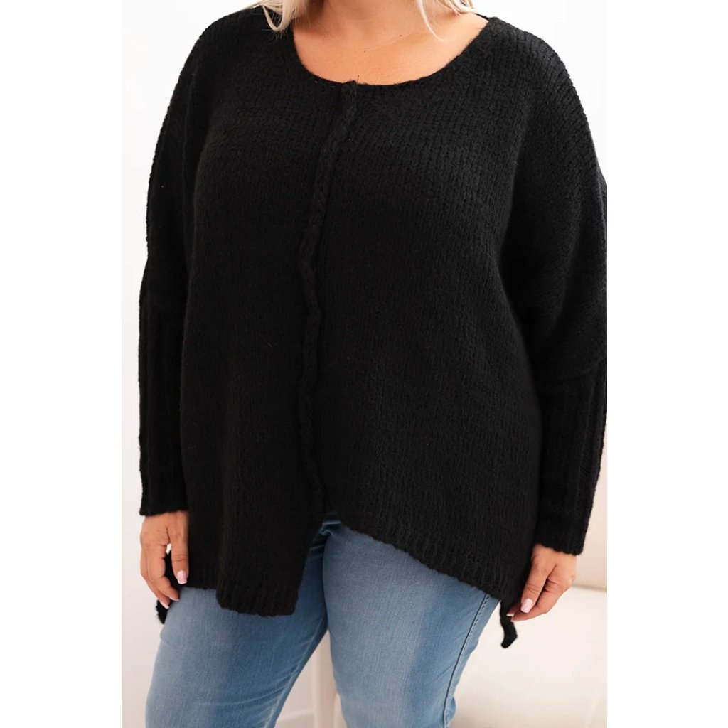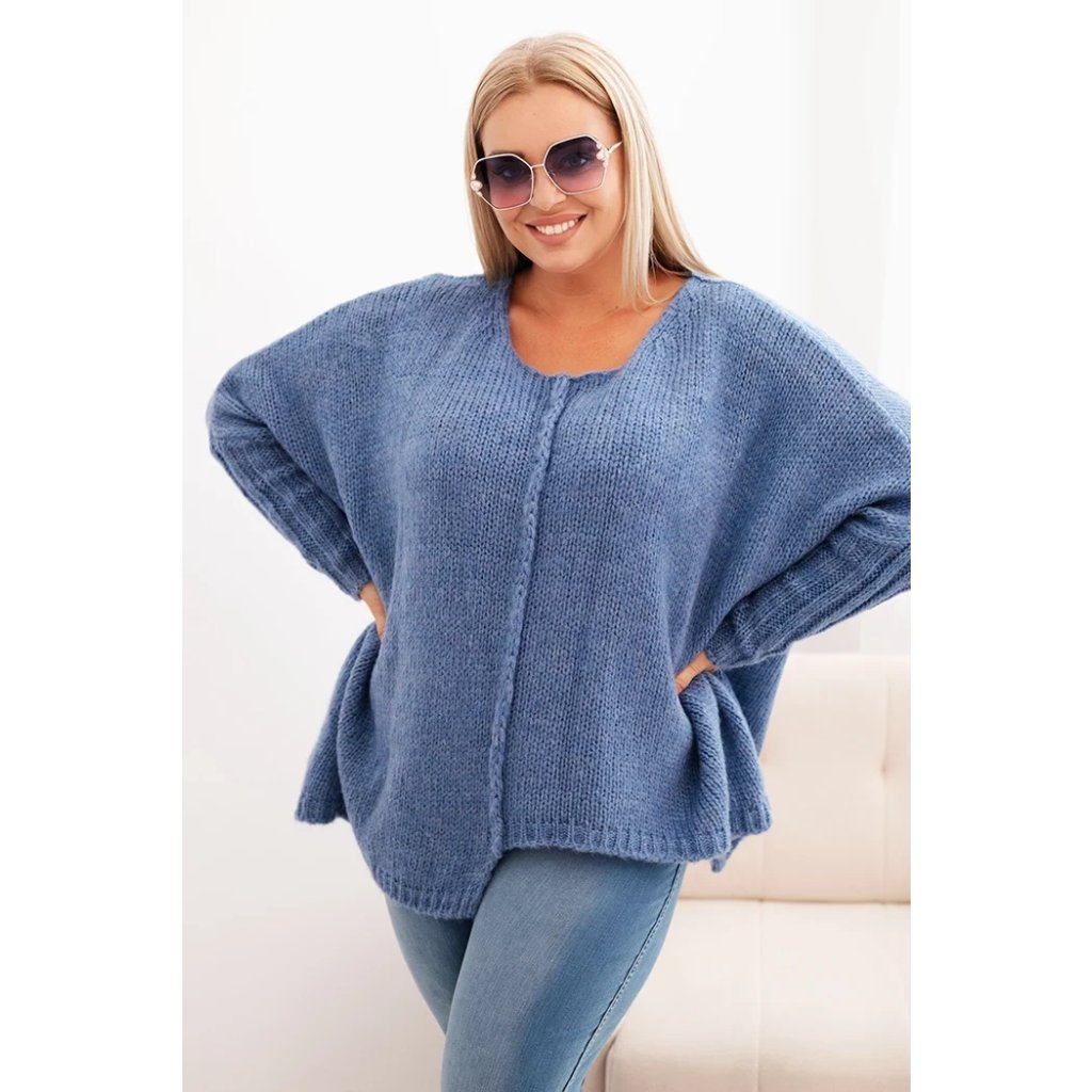 Tento dámsky sveter plus size je ideálnou voľbou pre ženy, ktoré si cenia pohodlie a štýl v jednom. Vyrobený z mäkkej, teplej pleteniny z akrylu a polyamidu, zaisťuje komfort nosenia po celý deň. Voľný oversize strih sa dokonale prispôsobuje postave a široké rukávy 3/4 zakončené nápletom dodávajú svetru moderný charakter. Výstrih do lodičky sa krásne usádza na krku, dodávajúci celku jemného čara.