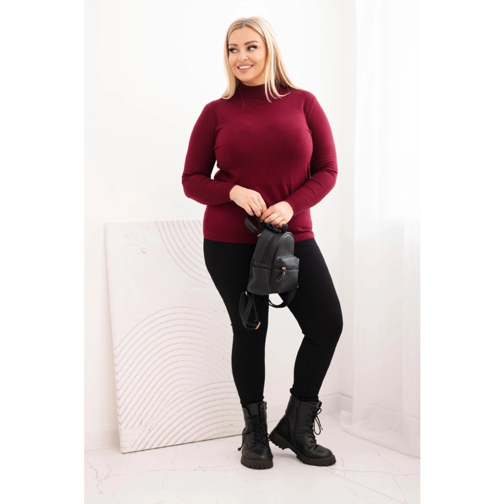 Dámsky sveter Plus Size z viskózy s rolákom bordový
