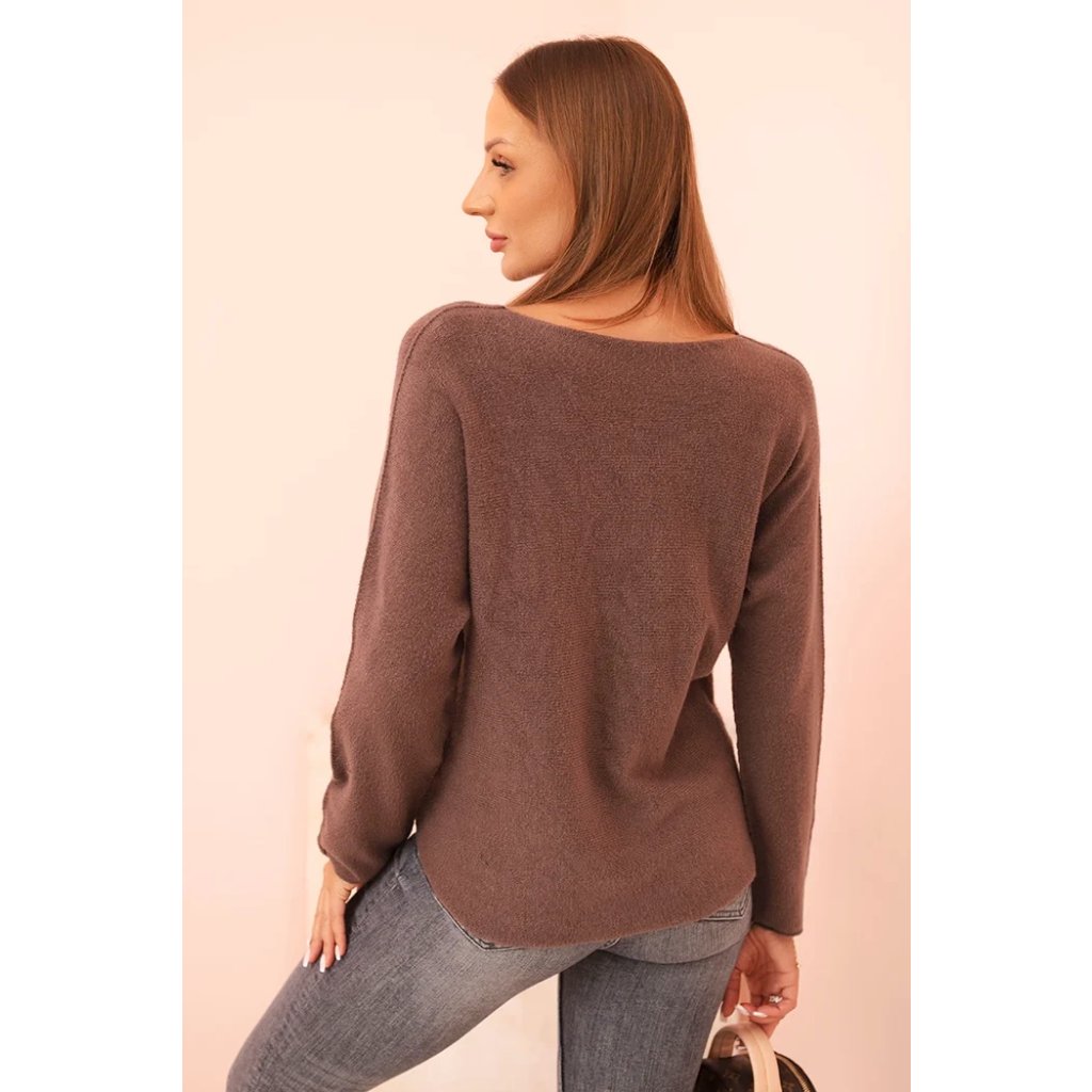 Dámsky sveter s viskózou a výstrihom do V mocca