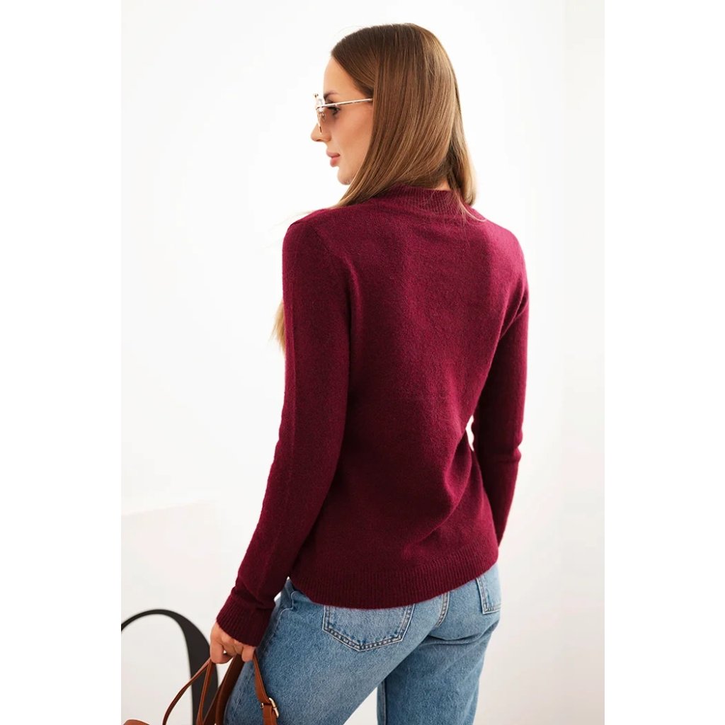 Tento klasický dámsky sveter so stojačikom je ideálnou ponukou na chladnejšie dni – teplý, príjemný na dotyk a neuveriteľne pohodlný. Vyrobený z mäkkej pleteniny s prímesou vlny a spandexu, zaisťuje komfort nosenia a jemnú elasticitu, ktorá sa dokonale prispôsobí postave. Subtílny polo-výstrih a hladký strih dodávajú celku eleganciu a univerzálnosť – môžete ho nosiť ako do práce, tak aj na každodenné nosenie.