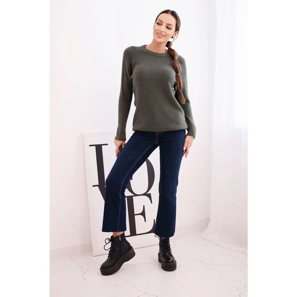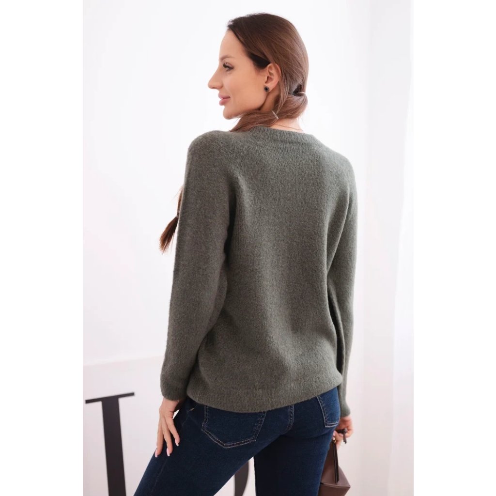 Dámsky sveter z baby alpaky s dlhým rukávom khaki