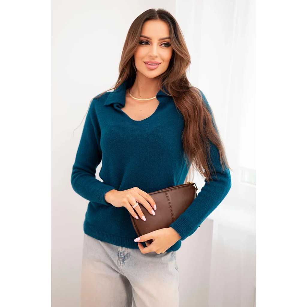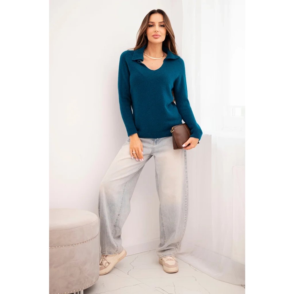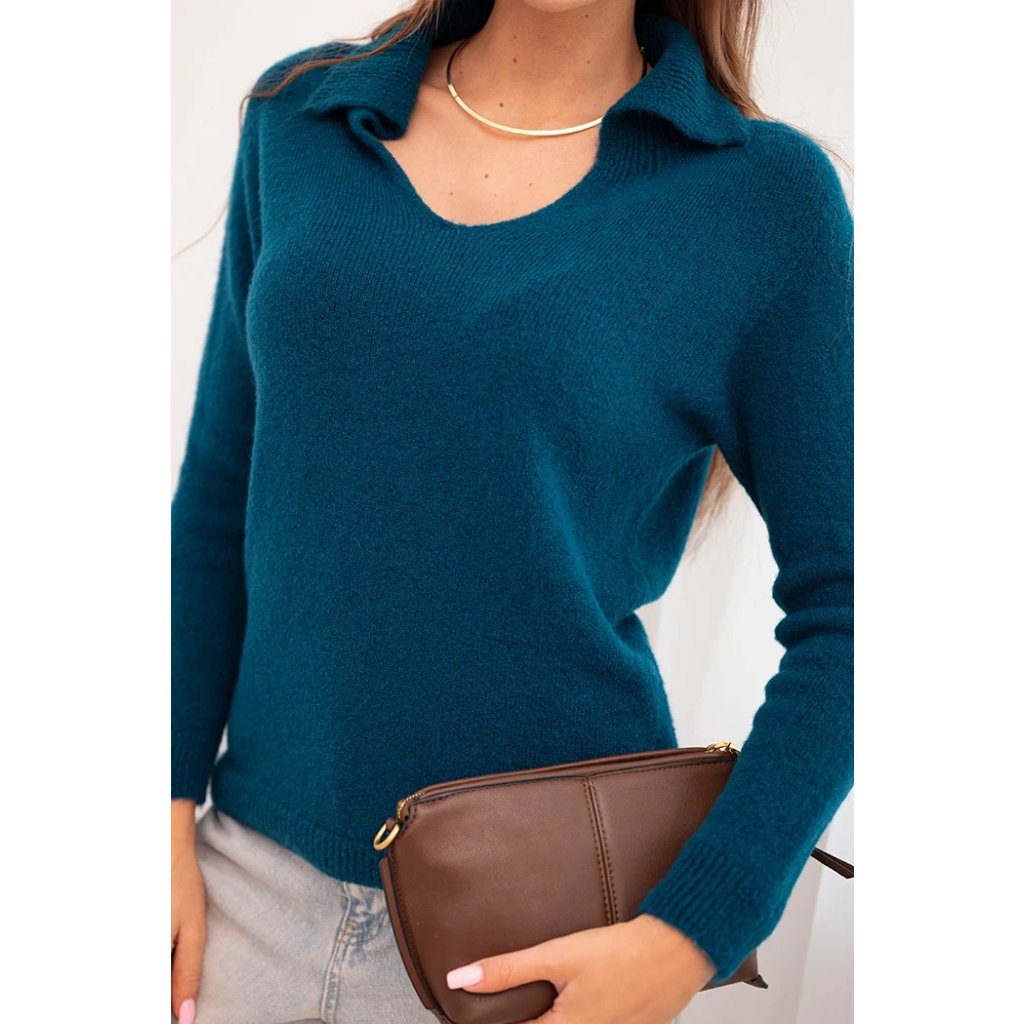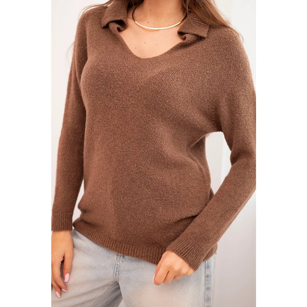 Dámsky sveter z baby alpaky s golierom a V-výstrihom