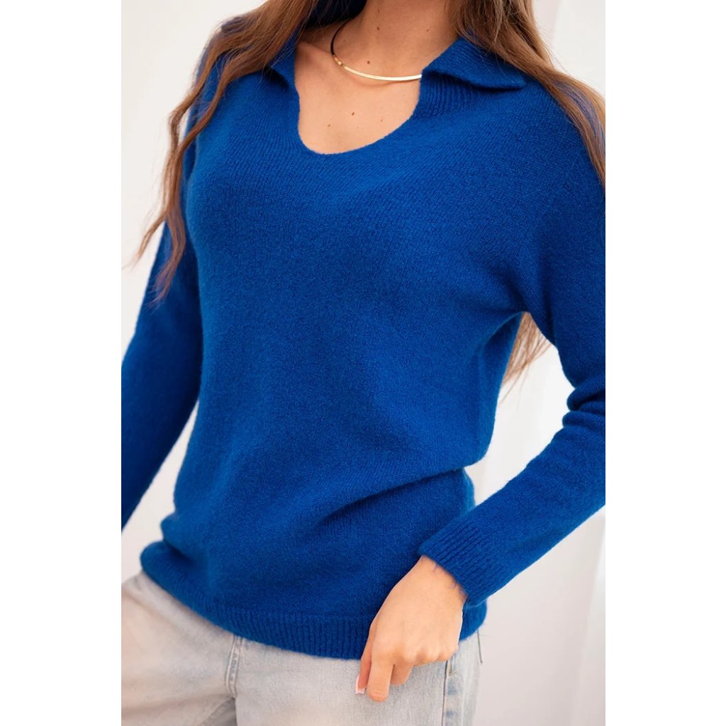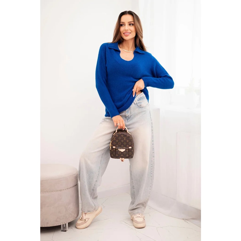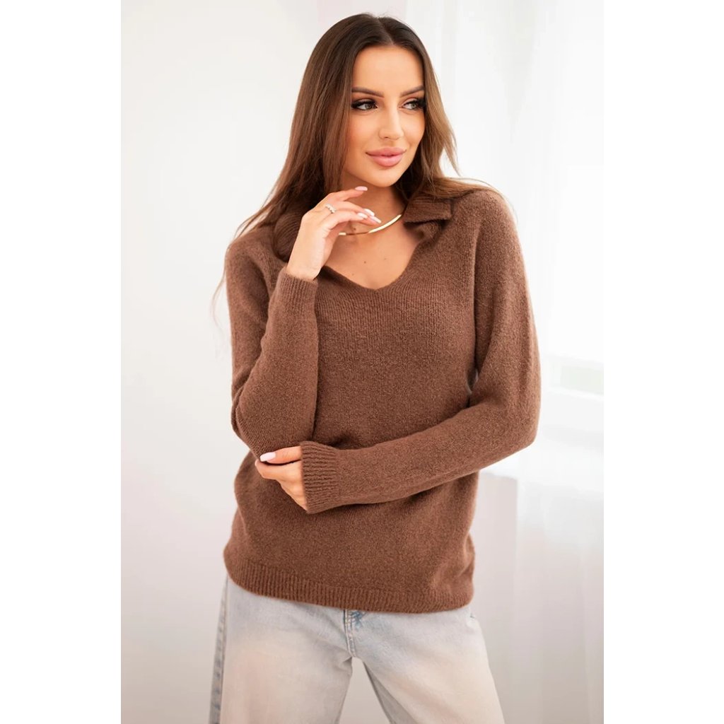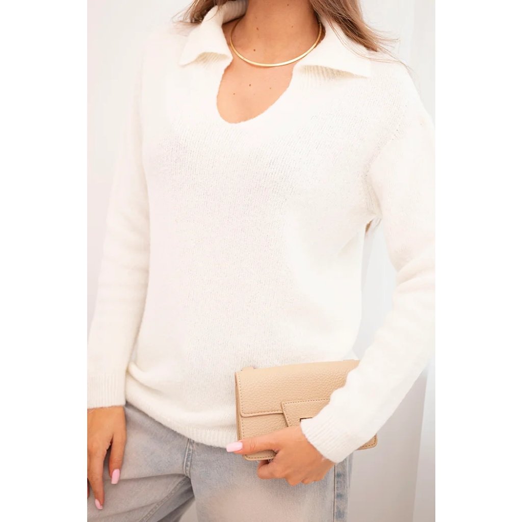 Dámsky sveter z baby alpaky s golierom a V-výstrihom