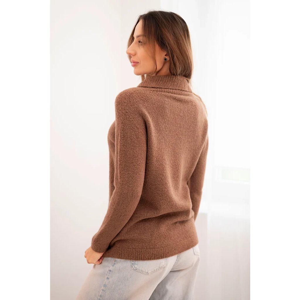 Pletenina je mäkká, teplá a veľmi príjemná na pokožku. Vďaka ľahko elastickému materiálu sa sveter dokonale prispôsobí postave bez toho, aby obmedzoval pohyb. Toto je skvelý základ pre stylizácie s džínsami, sukňou alebo pod sako.