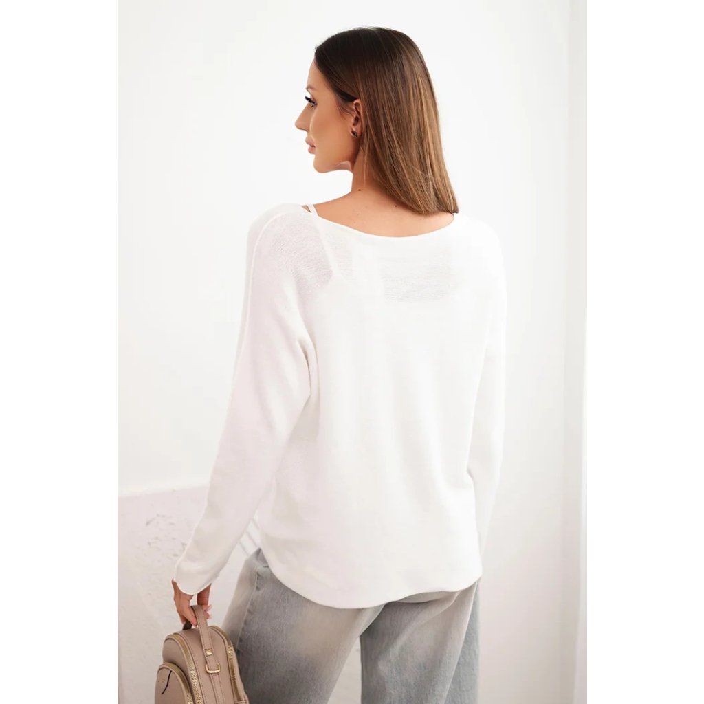Dámsky sveter z viskózy s dlhým rukávom a okrúhlym výstrihom biely