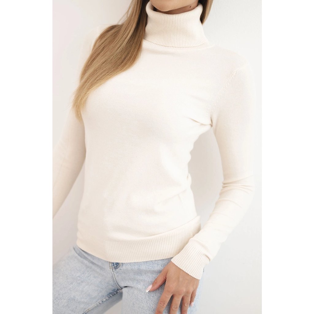 Model má dlhý rukáv a klasický rolák, ktorý poskytuje teplo v chladnejších dňoch, a zároveň vyzerá elegantne a žensky. Je to ideálny základ pre každodenné aj kancelárske štylizácie – hodí sa k sukniam, džínsom alebo elegantným nohaviciam.
