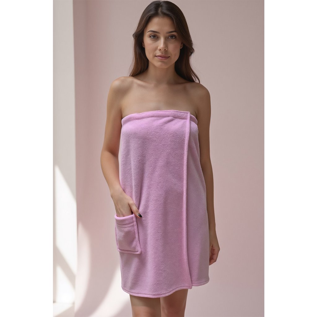 Pohodlný dámsky uterák. Vyrobené z vysoko kvalitnej priadze.Vďaka všitému suchému zipsu s gumičkou ho môžete pohodlne zavinúť a zapnúť. Používajte bez obáv, že sa vám oblečenie po vyjdení zo sprchy zošmykne. Je vyrobená zo 100 % savej bavlny a je skvelou náhradou za tradičnú osušku. Okrem toho bolo pridané malé vrecko, do ktorého môžete uložiť napríklad kľúč od saunovej skrinky alebo gumičku do vlasov.Dĺžka uteráka meraná na plocho je približne 67 cm, rozmery sa môžu líšiť v závislosti od veľkosti.Zloženie: 100 % bavlna.Dodatočné parametre