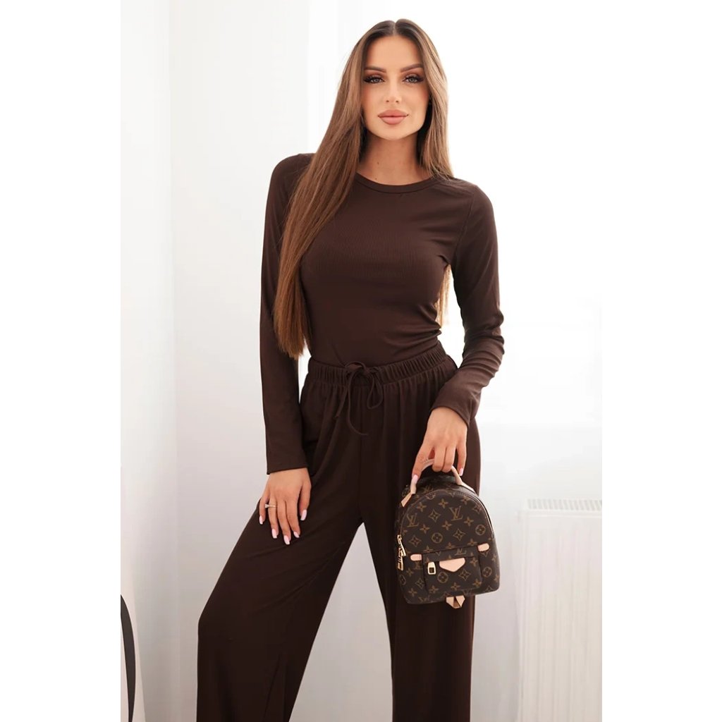 Hľadáte pohodlnú a štýlovú súpravu na každý deň? Tento dámsky komplet s dlhým rukávom a širokými nohavicami je ideálnou voľbou pre ženy, ktoré si cenia komfort a módny vzhľad. Vyrobené z mäkkej viskózy s prídavkom elastanu, skvele sa prispôsobí postave bez obmedzenia pohybu. Blúzka jednoduchého strihu s dlhým rukávom sa dokonale hodí k širokým nohaviciam s elastickým pásom na gumu. Je to skvelá voľba na relax doma aj na vychádzky do mesta. Súprava zodpovedá aktuálnym trendom módneho štýlu – je minimalistická, a pritom veľmi ženská. Takýto komplet by mal mať každý vo svojej skrini!