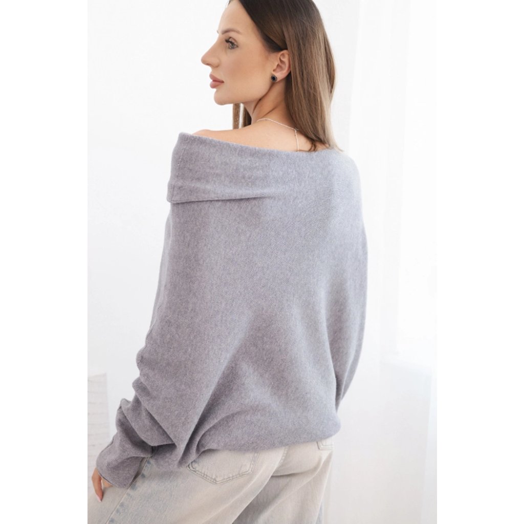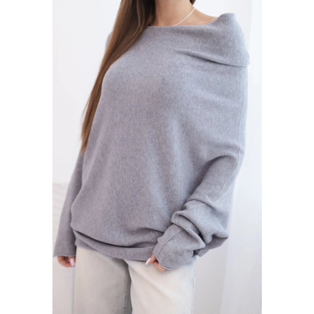 Dámsky viskózový sveter asymetrického strihu typu netopier sivý