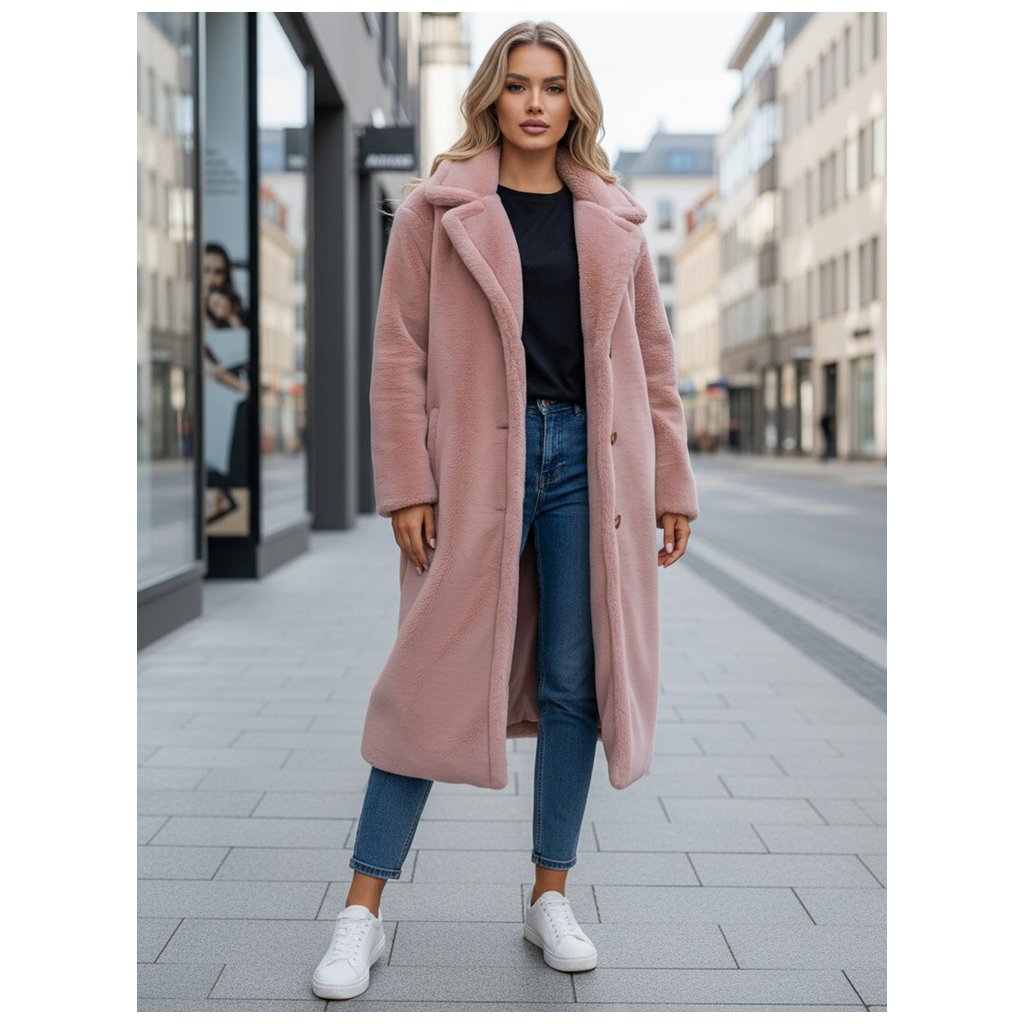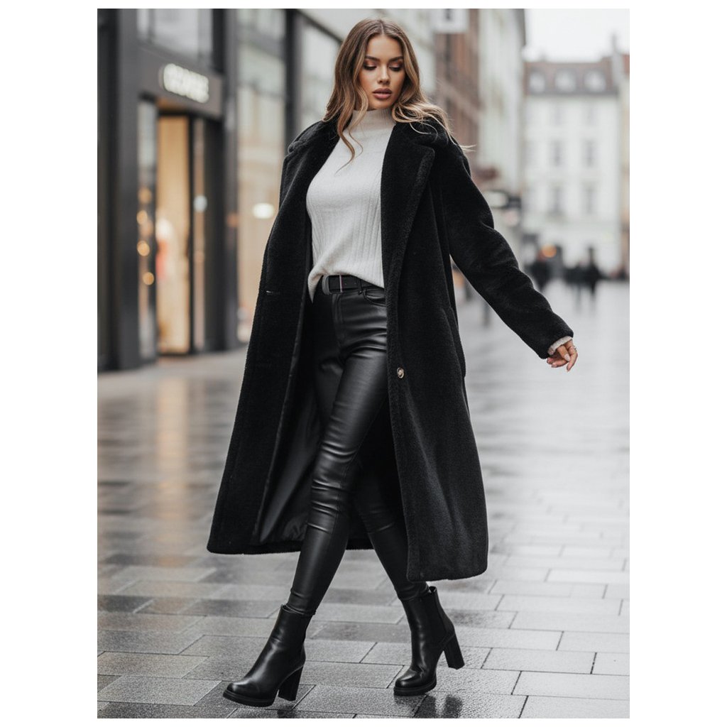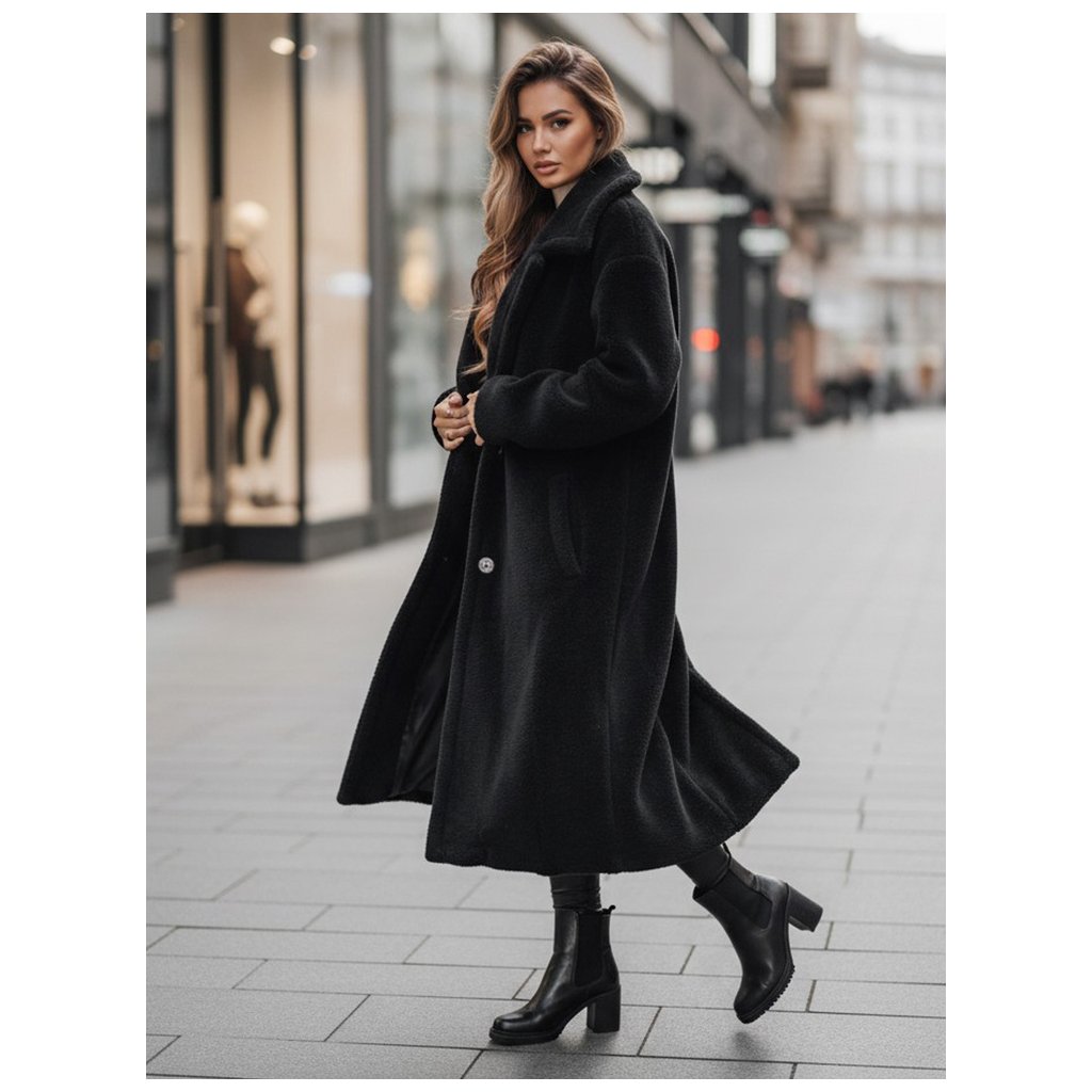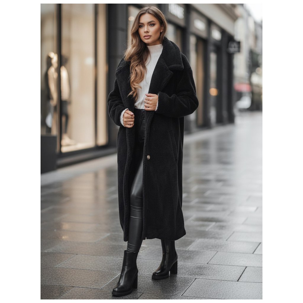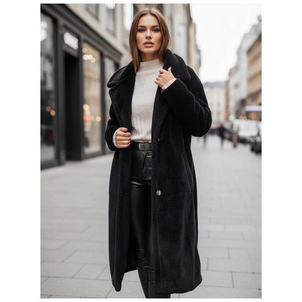 Dámsky dlhý zimný kabát s plyšovou kožušinou, čierny, Dstreet NY0760zTento dlhý dámsky kabát, NY0760z, vyrobený z mäkkej kožušiny, je perfektnou voľbou pre zimné dni. Klasický golier s odklopným okrajom a gombíkmi vpredu mu dodávajú elegantný nádych, zatiaľ čo nasúvacie vrecká a bočné rozparky zvyšujú pohodlie. Kabát je podšitý pre pohodlie a teplo.