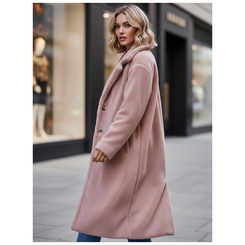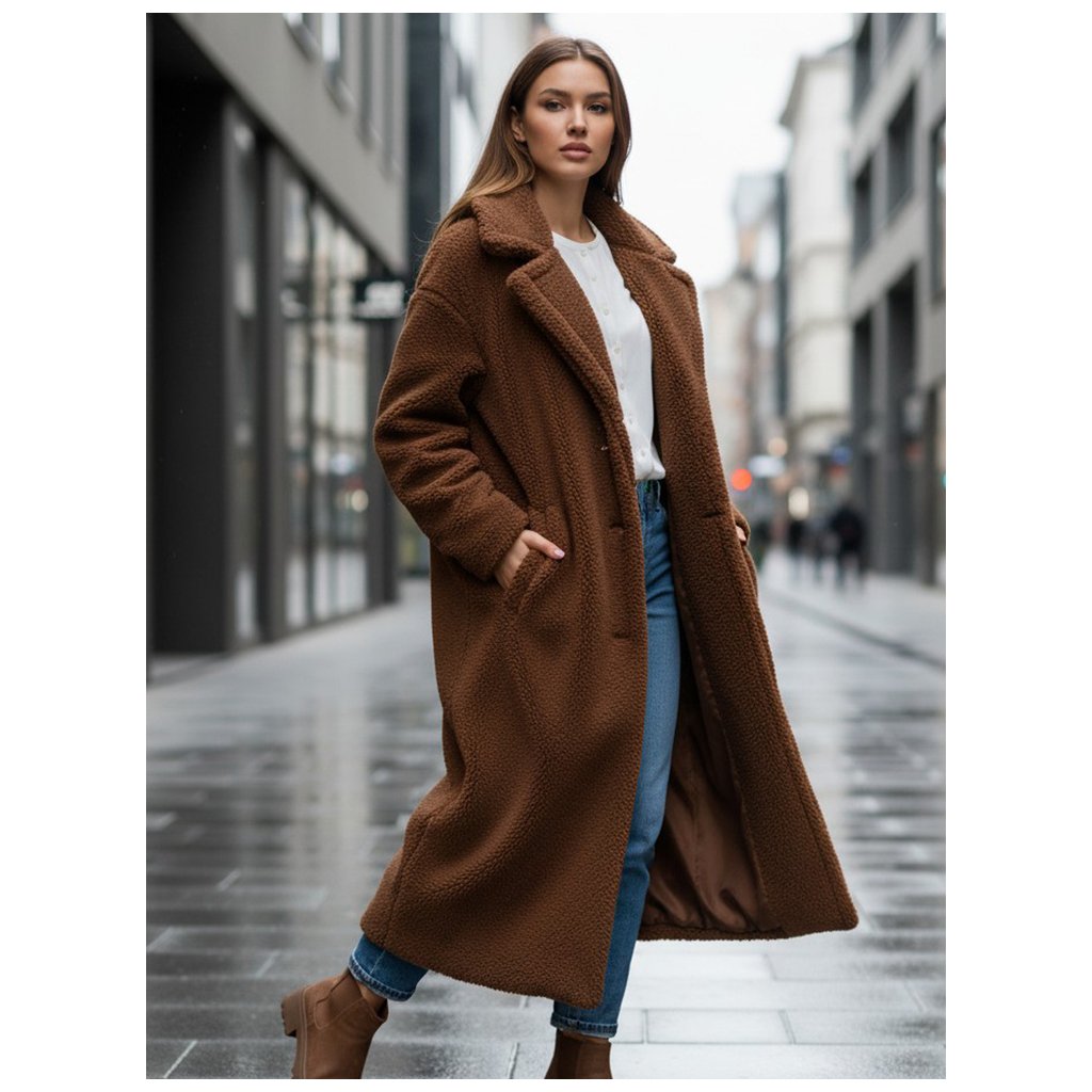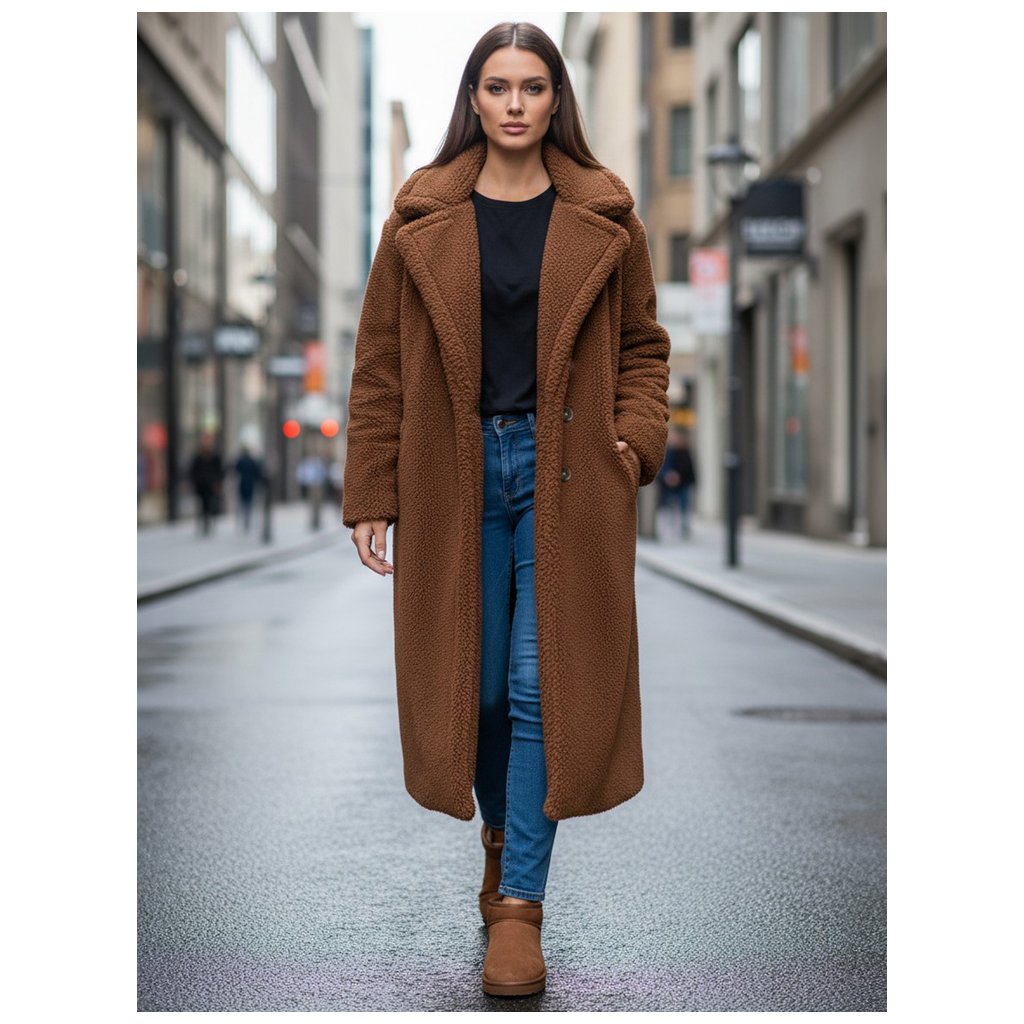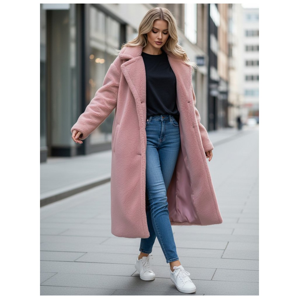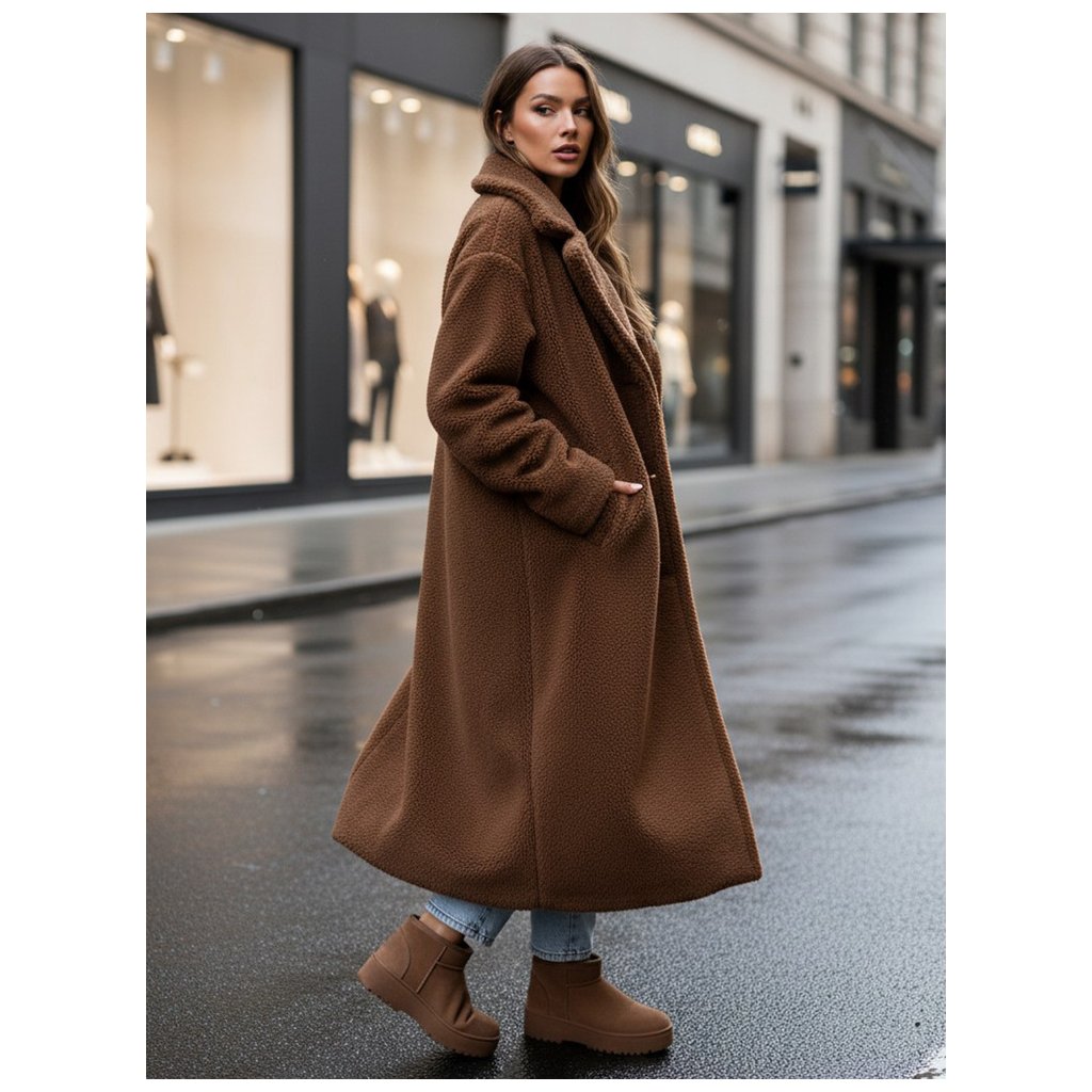 Dámsky dlhý zimný kabát s plyšovou kožušinou, čierny, Dstreet NY0760zTento dlhý dámsky kabát, NY0760z, vyrobený z mäkkej kožušiny, je perfektnou voľbou pre zimné dni. Klasický golier s odklopným okrajom a gombíkmi vpredu mu dodávajú elegantný nádych, zatiaľ čo nasúvacie vrecká a bočné rozparky zvyšujú pohodlie. Kabát je podšitý pre pohodlie a teplo.