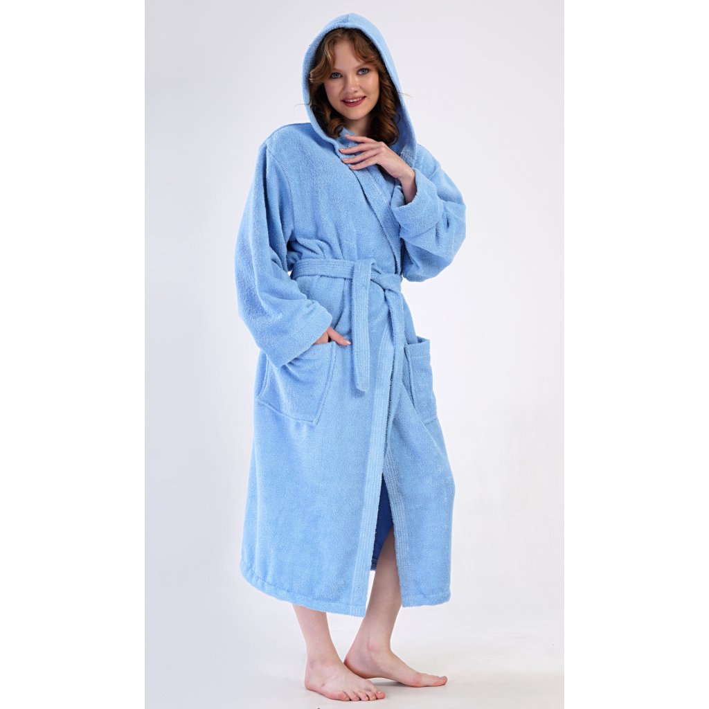 Dámsky župan dlhý s kapucňou Modrásek