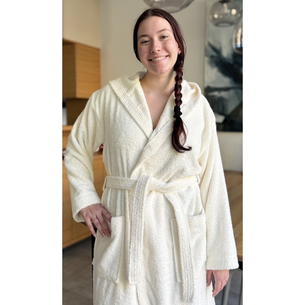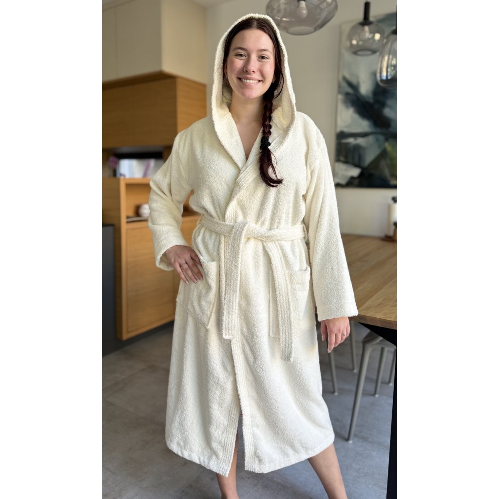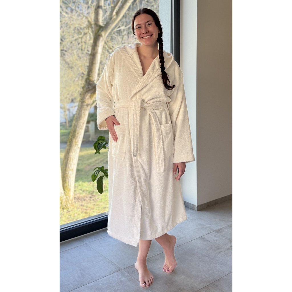 Dámsky bavlnený froté župan s kapucňou Pláž. Dámsky dlhý župan s kapucňou a sťahovacím pásom je vhodný po kúpeli aj na domáce leňošenie na gauči. Froté župan má praktické vrecká, ktoré oceníte pri návšteve kúpeľov. Použitý bavlnený materiál je príjemný a pružný na dotyk.