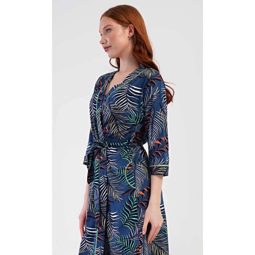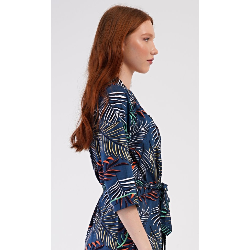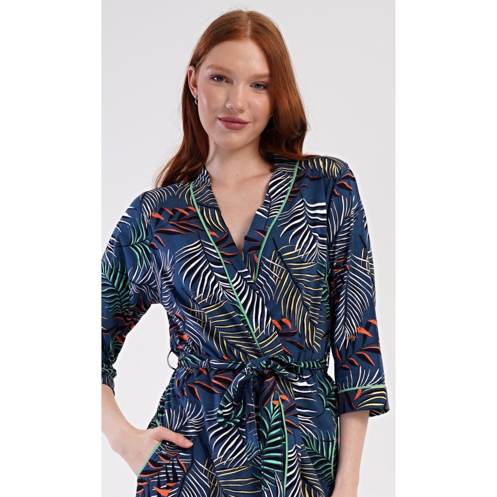 Dámsky krátky bavlnený župan Barbara. Dámsky županček v dĺžke pod kolená je potlačený pestrofarebnými listami a vetvičkami. Župan má pás so šnúrkou a praktické vrecká. Použitý bavlnený materiál je príjemný a pružný na dotyk, je sací a oceníte ho aj po kúpeli.