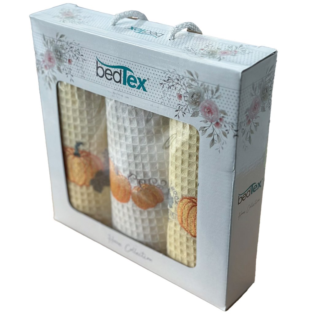 Darčeková sada 3 ks vaflových utierok s vyšitou tekvicou
