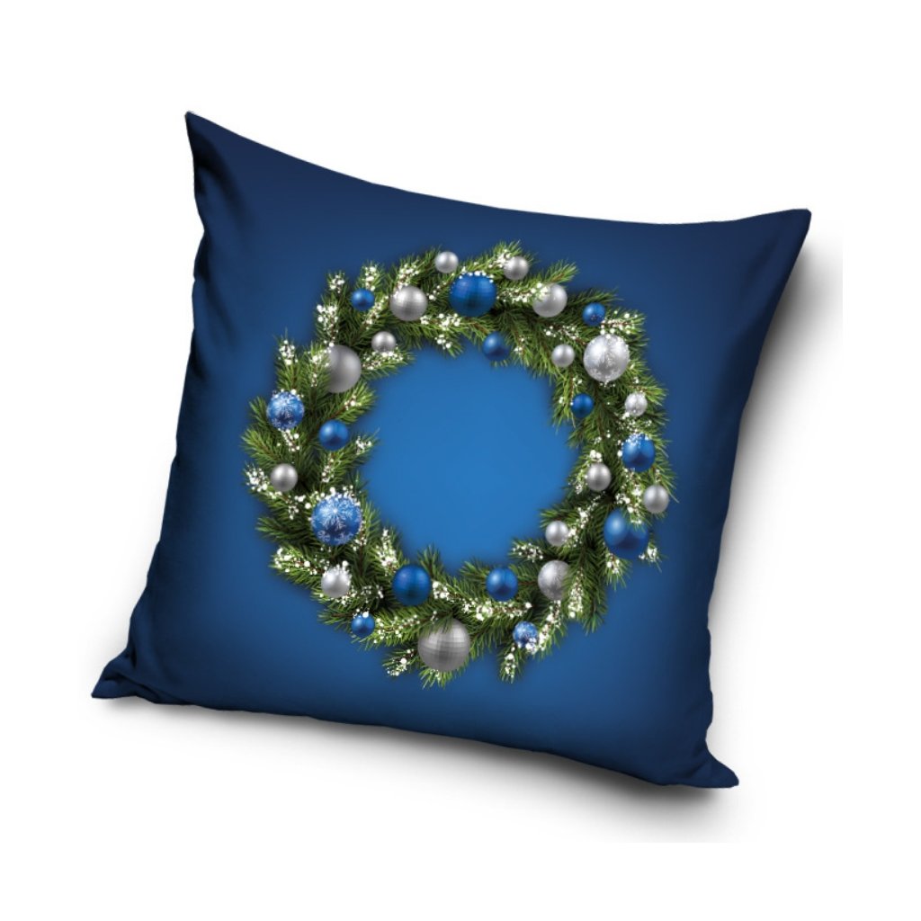 Dekoračný vankúšik Vianočný Veniec Modrý