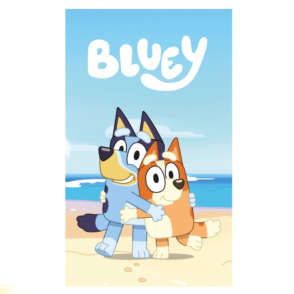 - detská deka s motívom Bluey a Bingo na pláži