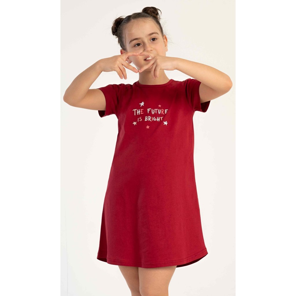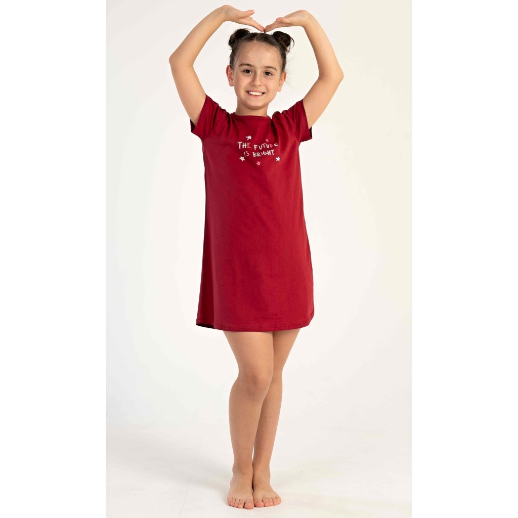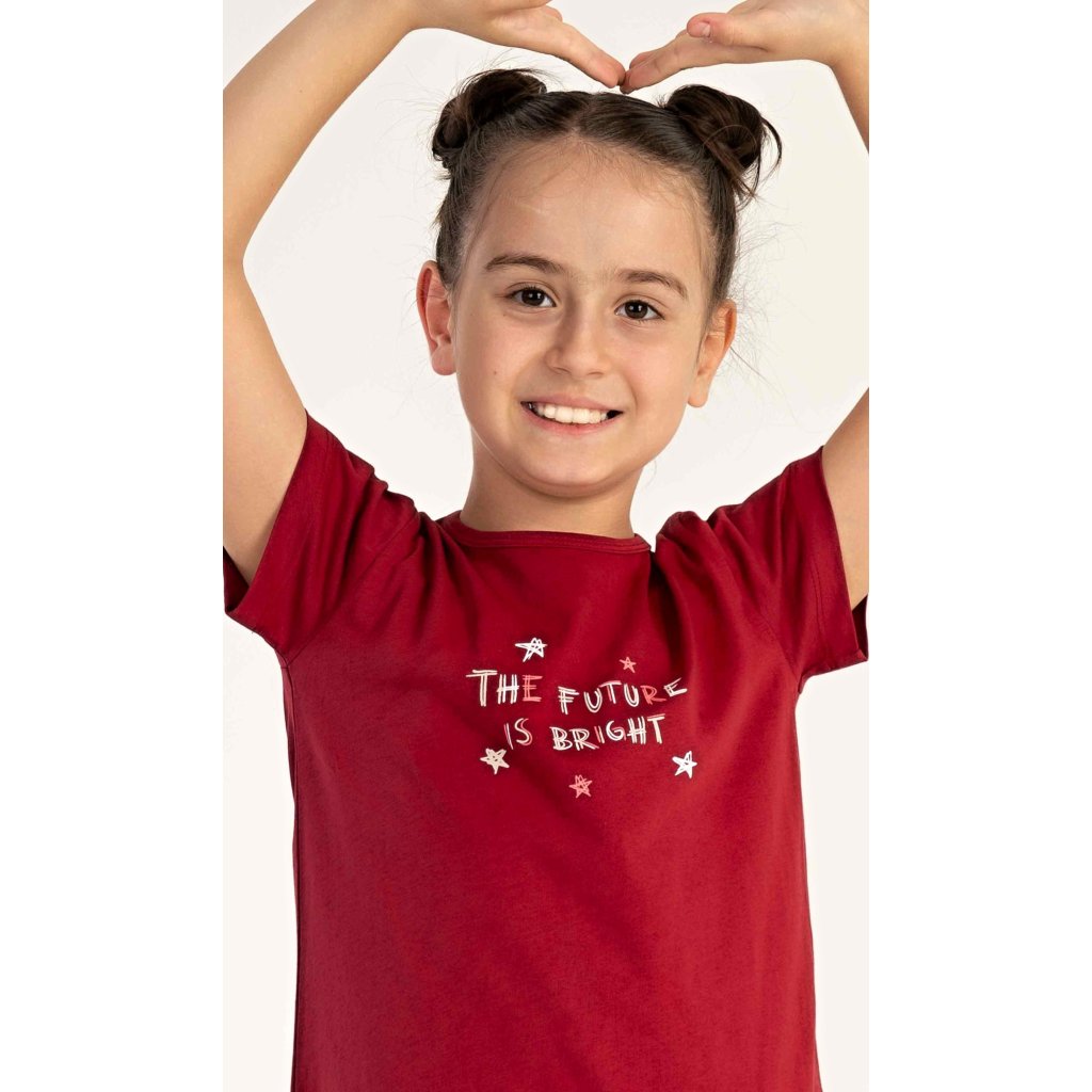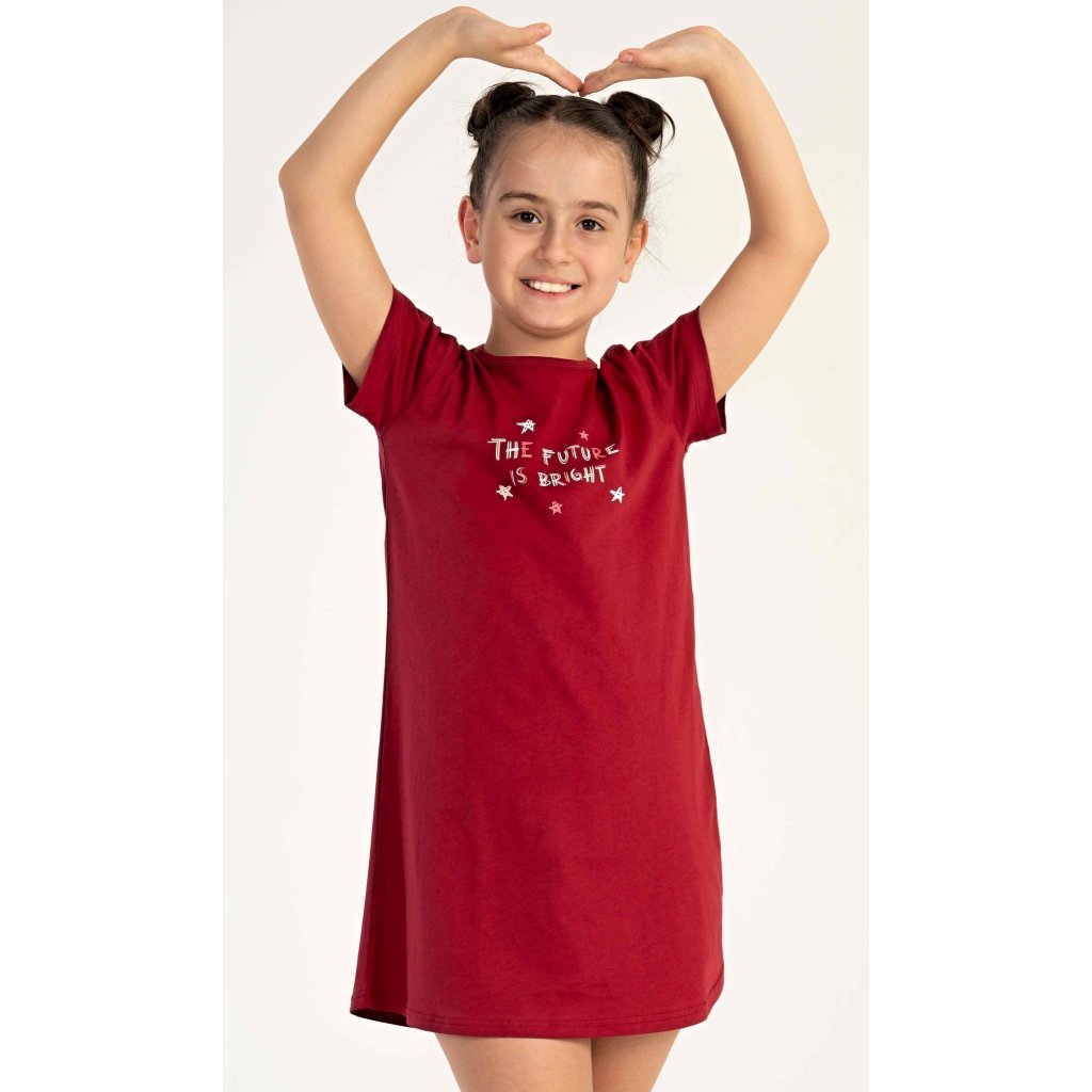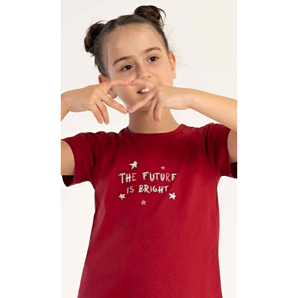 Detská bavlnená nočná košeľa s krátkym rukávom Hviezdičky. Na jednofarebnej košeli s krátkym rukávom je obrázok hviezdičiek a nápis 'The future is bright'. Použitý bavlnený materiál je pružný a príjemný na dotyk.