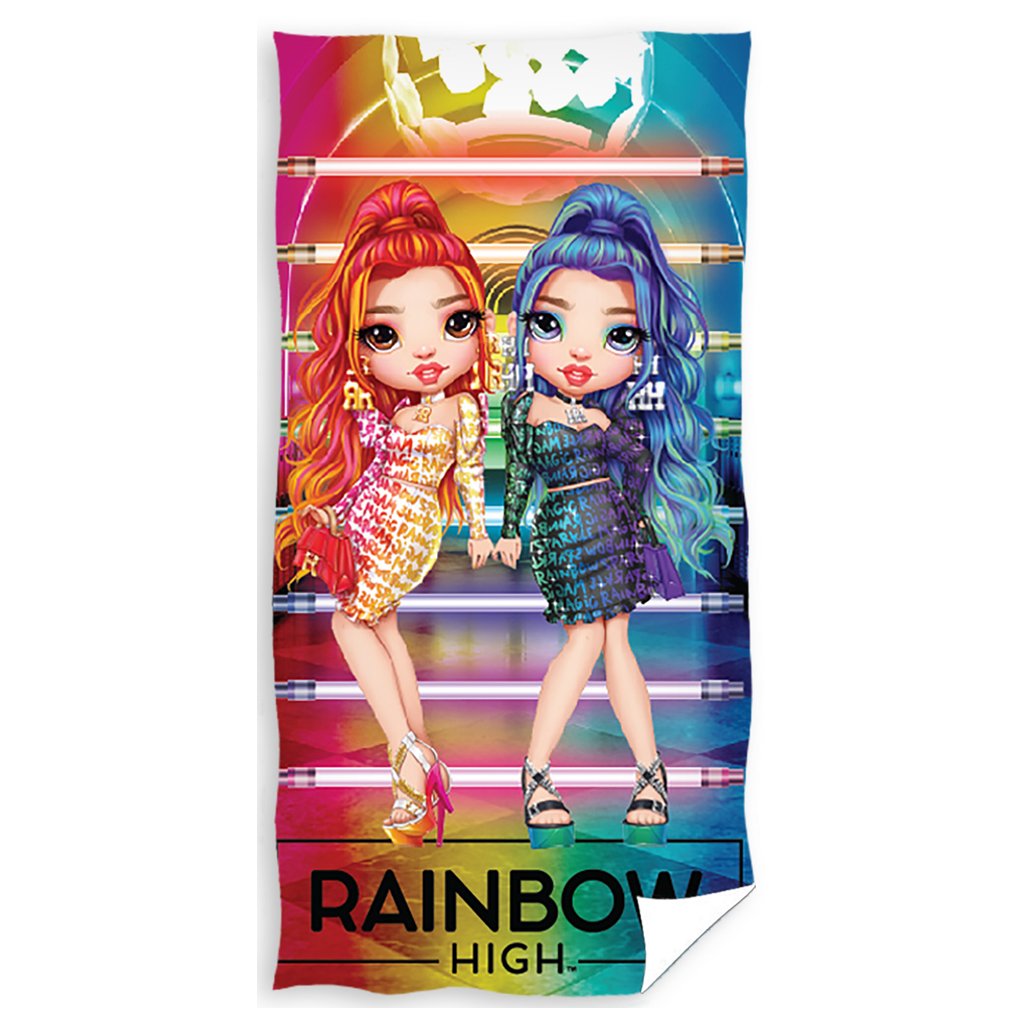 Detský uterák Rainbow High Fashion Party Dolls je vyrobený zo 100 % bavlnyRozmery uteráka sú 70x140 cm a gramáž froté je 300 g/m² Na líci uteráka sú dve krásne bábiky, červená Ruby a modrá Skyler Ruby a Skyler išli spolu na módnu prehliadku,