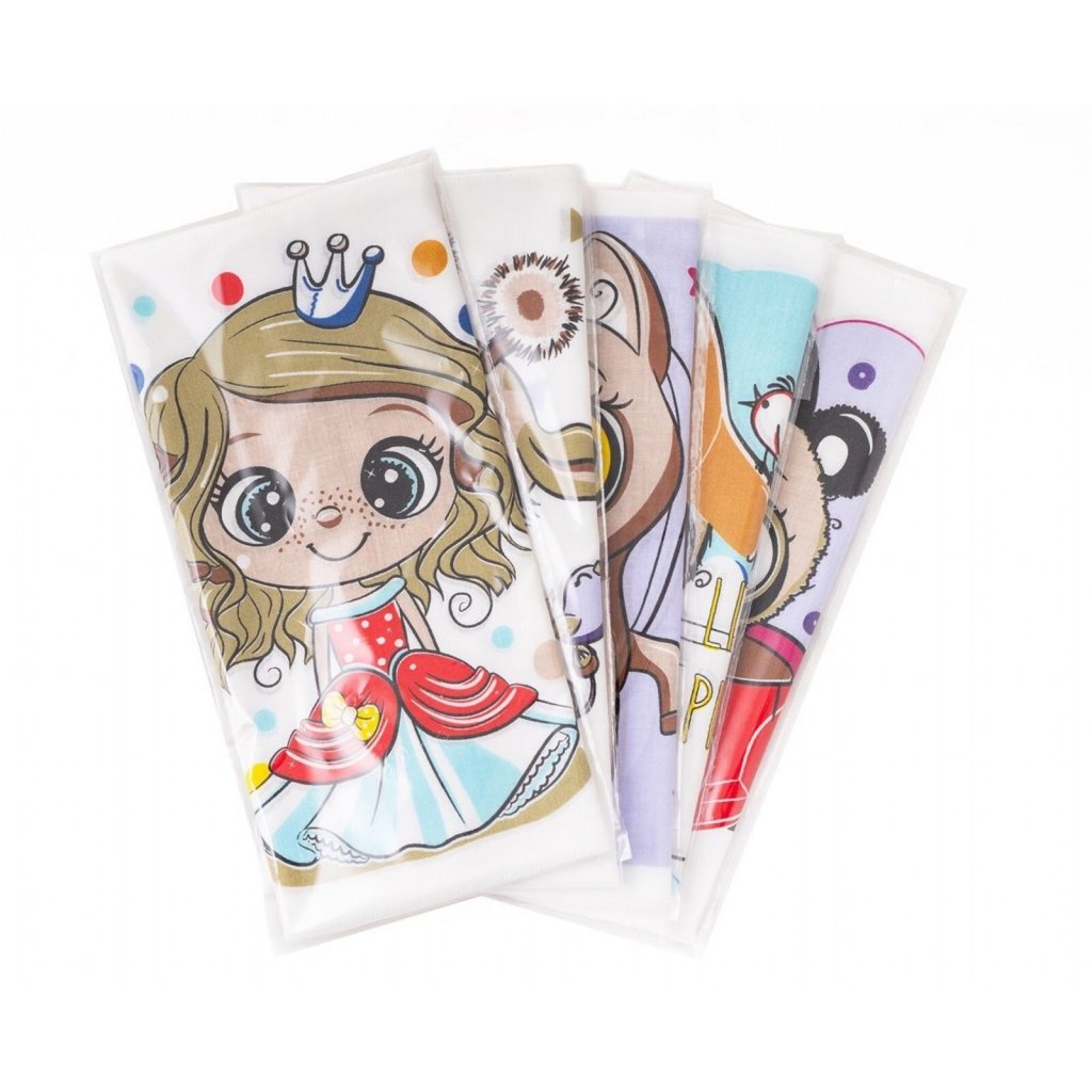 Detské vreckovky CO6 farebné s detskými motívmi, balené po 6 kusoch. Motívy podľa skladových zásob, v pastelových farbách.