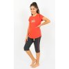 Detské bavlnené capri pyžamo Dobré veci. Detské pyžamo pozostáva z trička s krátkym rukávom a trojštvrťových nohavíc. Na tričku je roztomilý obrázok odpočívajúceho psa a pod ním nápis "Good things". Rovnaký motív sa opakuje na kapri nohaviciach s pruhom na boku.