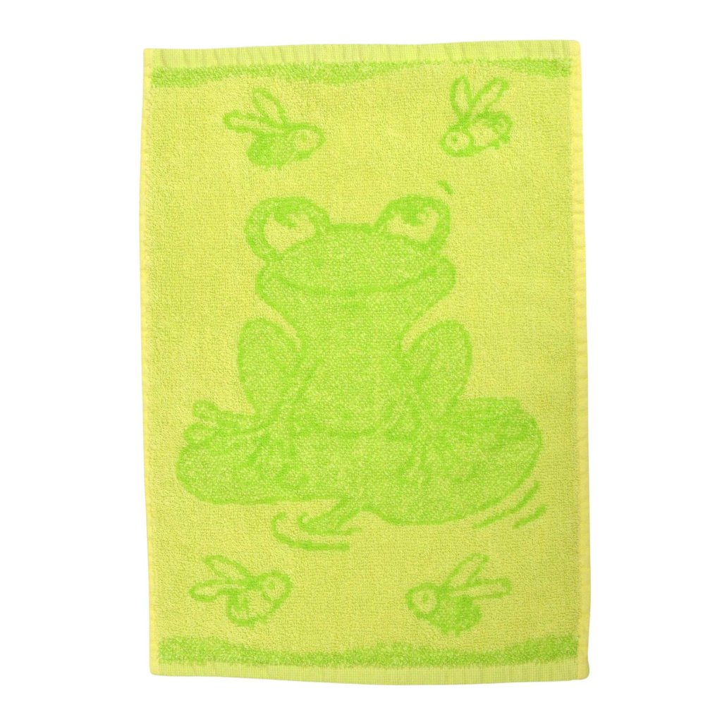Veselý detský uteráčik Frog green prináša radostný motív žabky na lekne obklopené muškami. Obrázok je vtkaný z oboch strán, čo zaisťuje dlhšiu životnosť a stálosť motívu.