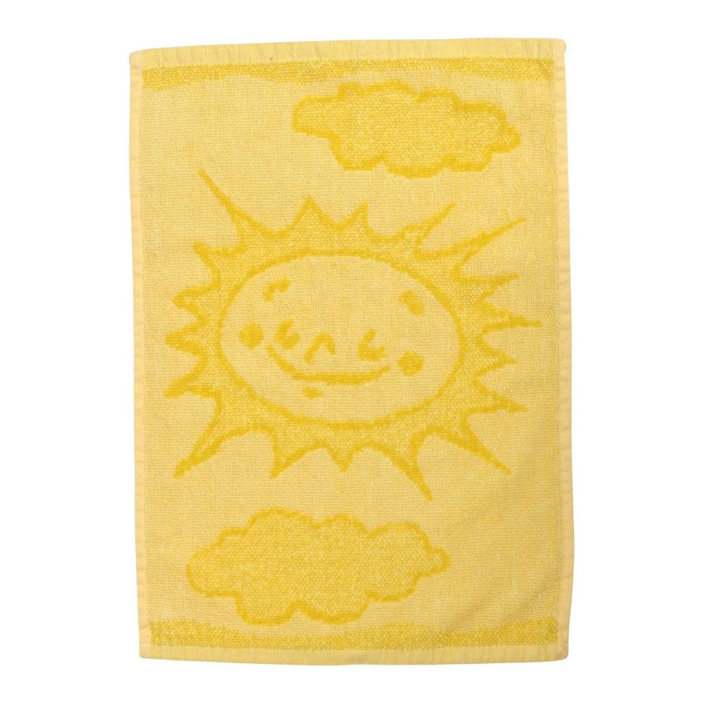 Detská osuška Sun yellow rozžiari každý deň vďaka milému votkanému motívu usmievavého slniečka a obláčikov. Obrázok je prevedený z oboch strán a zostáva krásny aj po opakovanom praní.