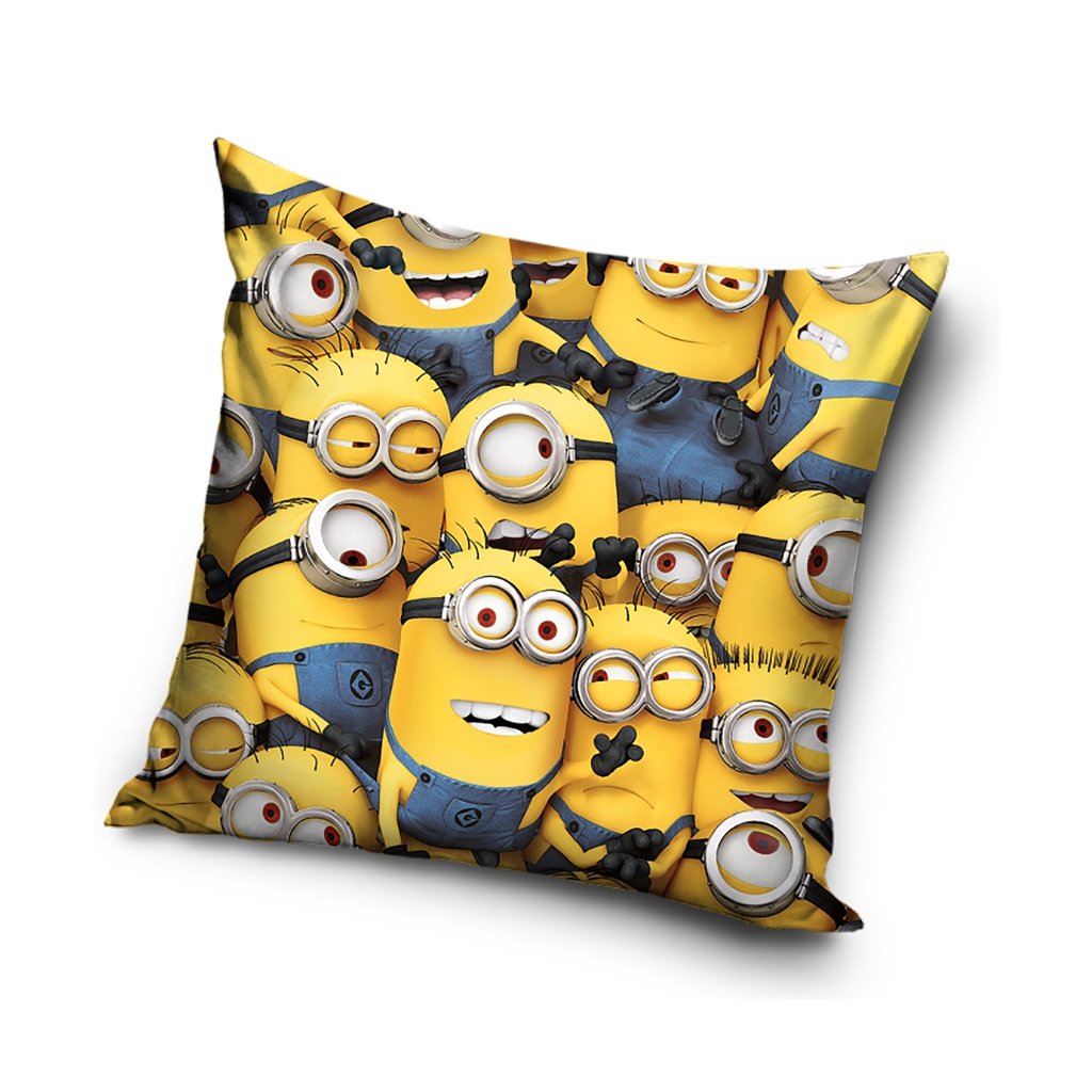 Na oboch stranách vankúšika je kvalitná potlač plná Mimoni v najrôznejších vtipných pózach a výrazoch – smejúce sa, prekvapené aj šibalské tváre vytvárajú motív, ktorý doslova srší energiou, farbami a optimizmom