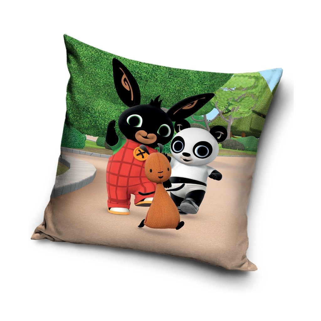 Na tejto veselej obliečke je zachytená scéna z obľúbeného detského seriálu Zajačik Bing, kde si Bing užíva deň plný hier so svojimi kamarátmi Flopom a Pandou