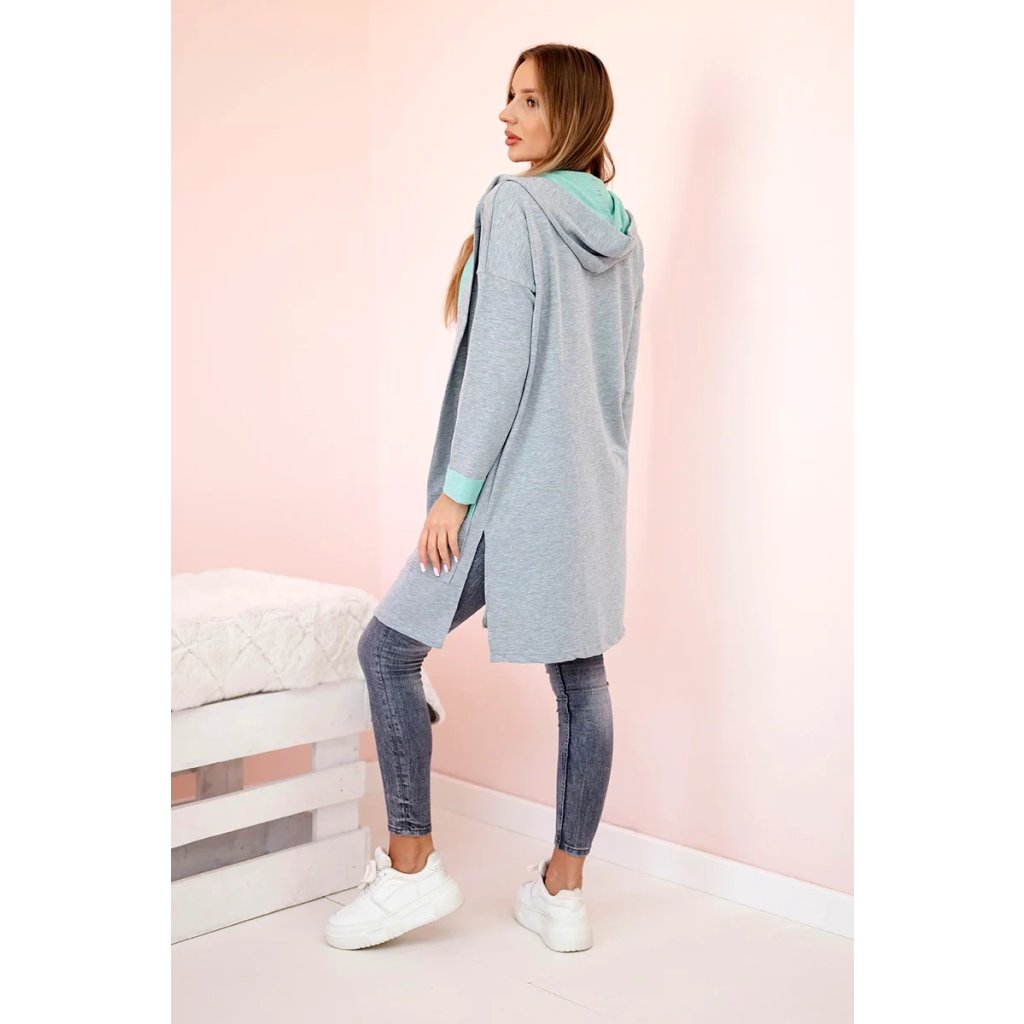 Predstavujeme dlhú mikinu s kapucňou. Dvojfarebné prevedenie. Mikina má v spodnej časti bočné rozparky. Je vyrobená z vysoko kvalitnej izolovanej tkaniny.