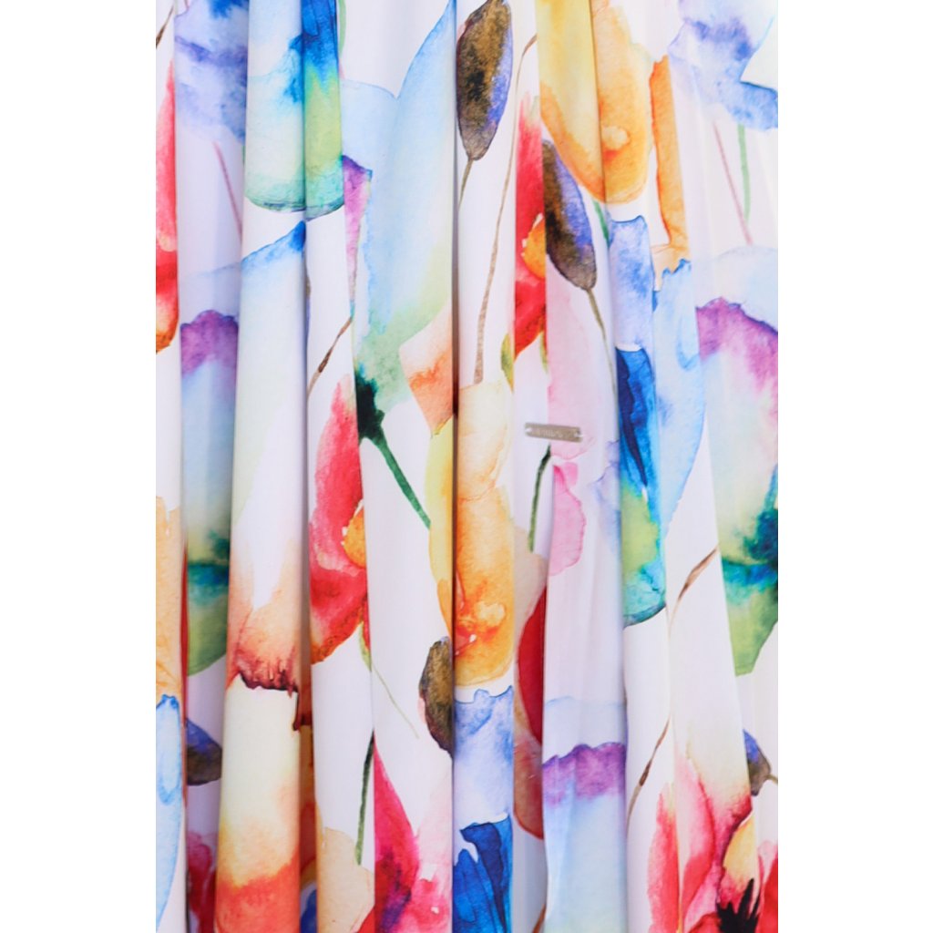 ☀️ Pocíťte letnú ľahkosť a romantický štýl s našimi dlhými španielskymi šatami! Volán zvýrazňuje ramená a efektný rázporok na nohaviciach dodáva na zmyselnosti. Model je doplnený opaskom, ktorý krásne zvýrazňuje pás. Šaty potešia vzorom veľkých, maľovaných farebných kvetov, ? vytvárajúci jedinečný vzhľad ideálny na dovolenku, letnú párty alebo romantické večery. ?? Poľský výrobok. Značka Numoco.