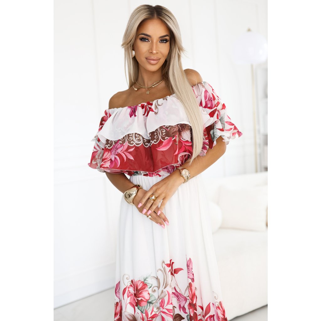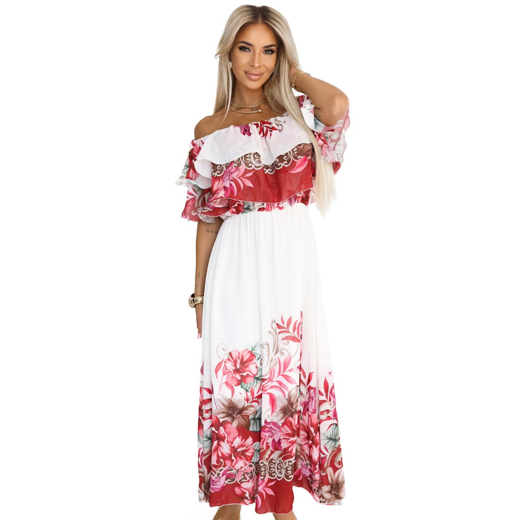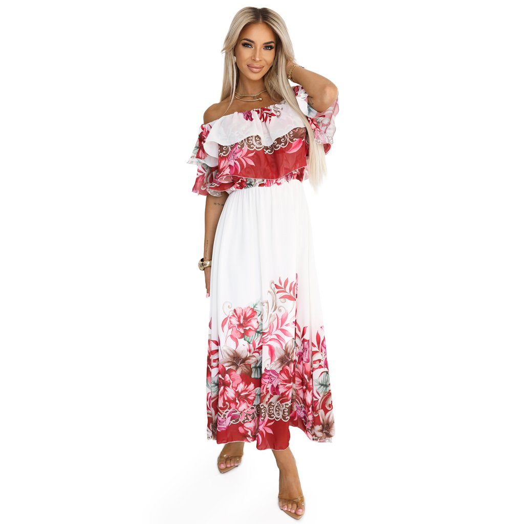 Kvetinové maxi šaty španielka s volánikom – Numoco Basic