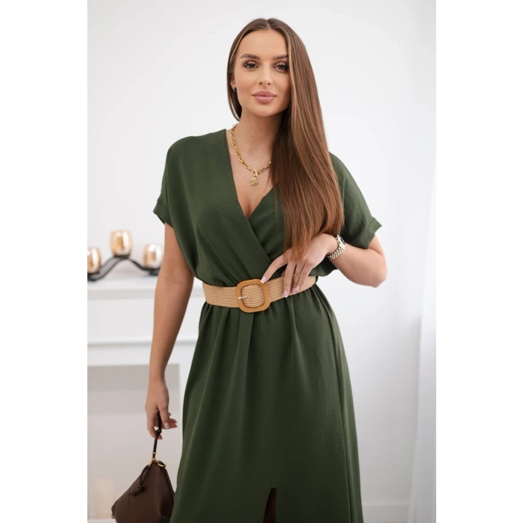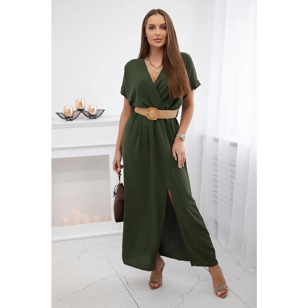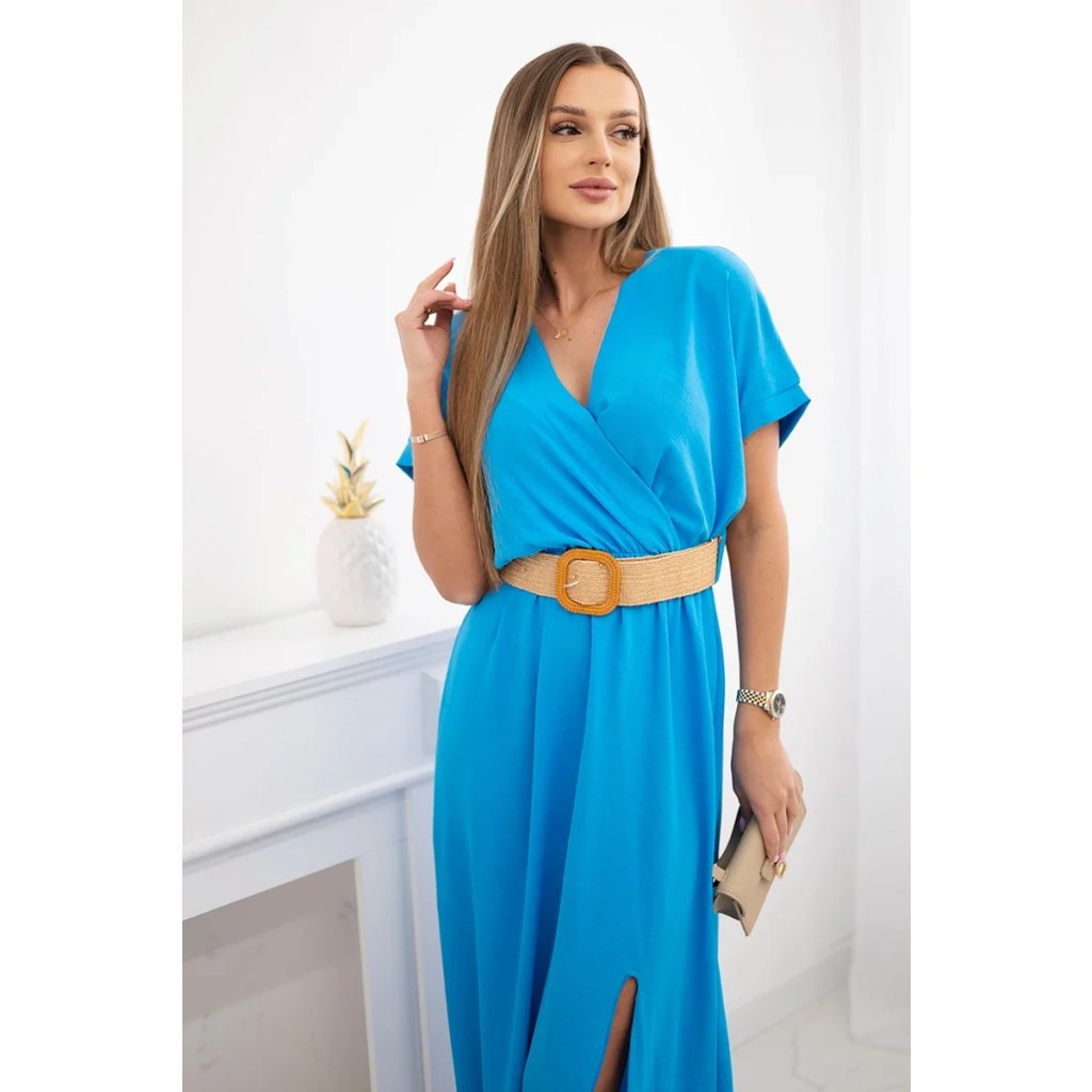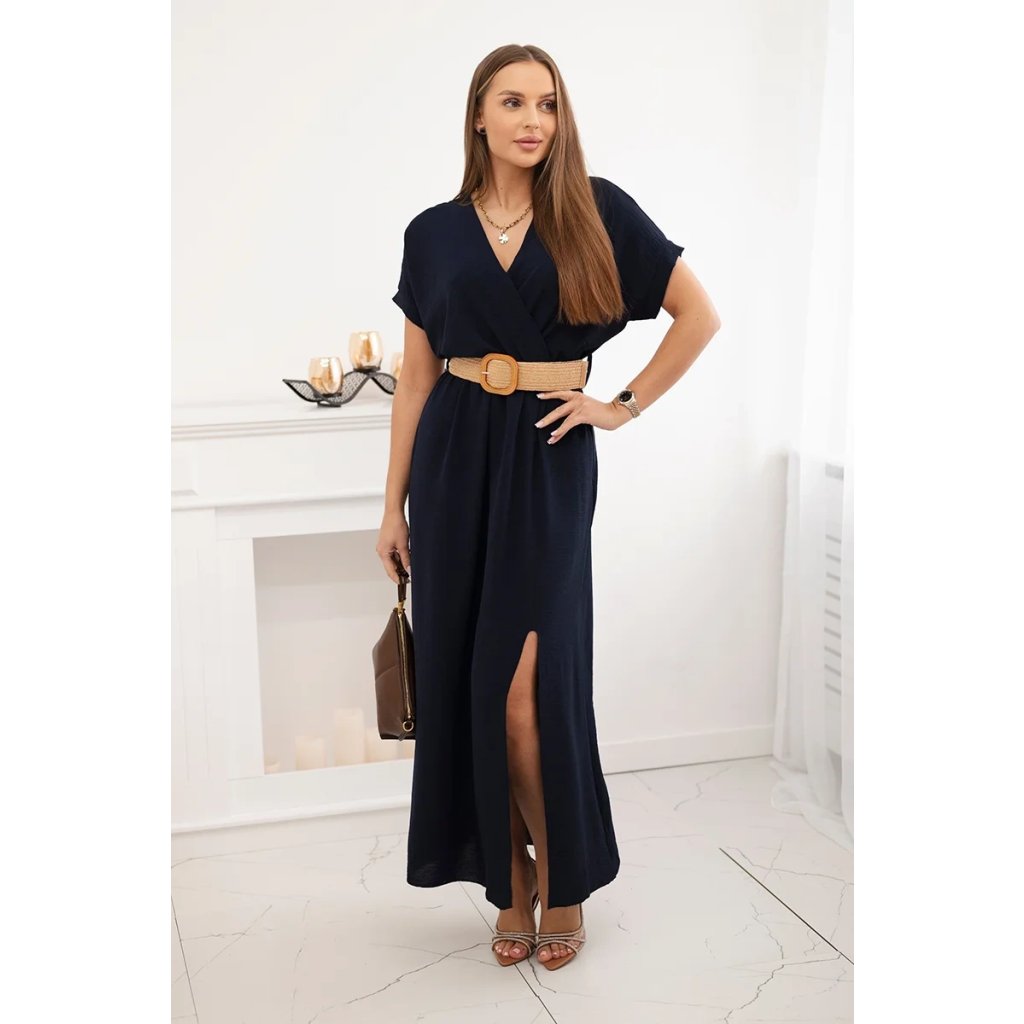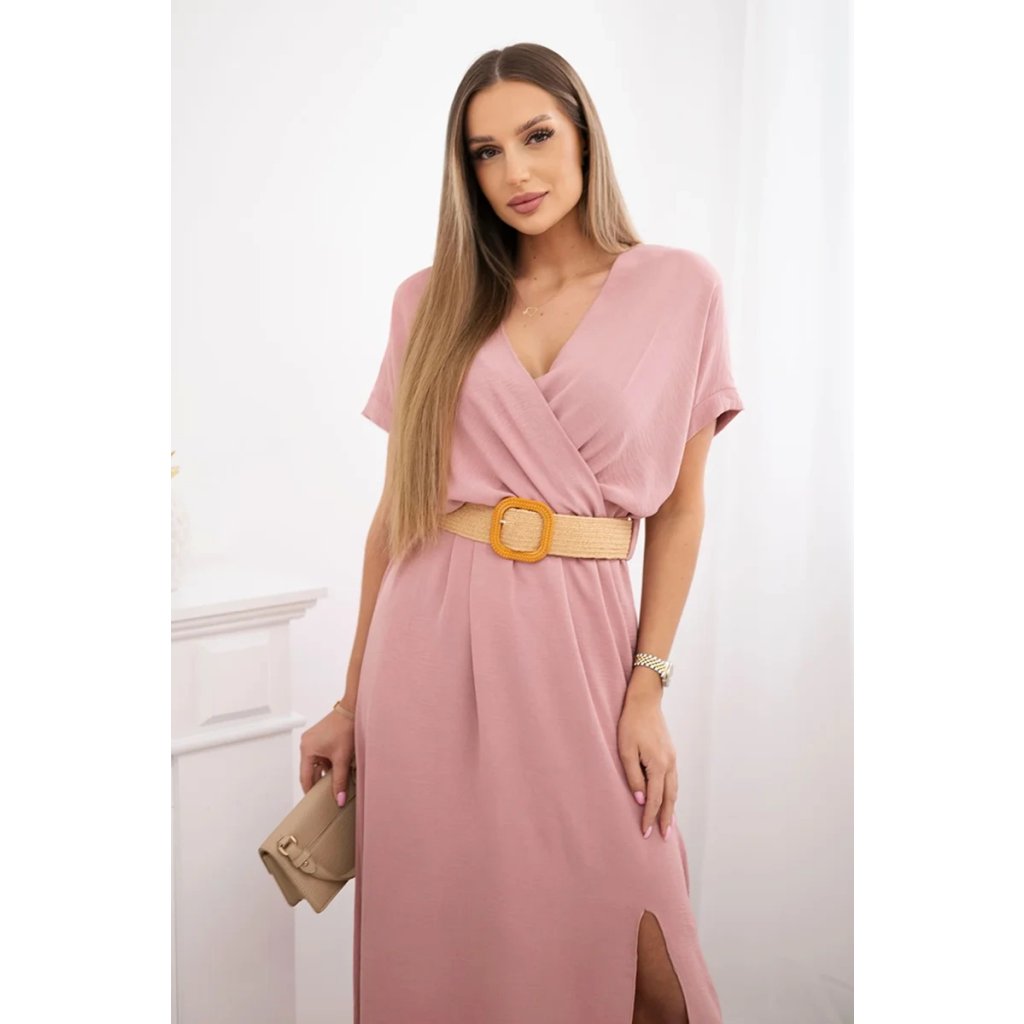 Predstavujeme vám pohodlné šaty s ozdobným opaskom. Šaty majú dole rázporky. Šaty sú vyrobené z kvalitného materiálu. Veľmi zaujímavá ponuka pre všetky dámy. Veľkosť je univerzálna a vyhovuje dámam, ktoré nosia veľkosť S, M alebo L.
