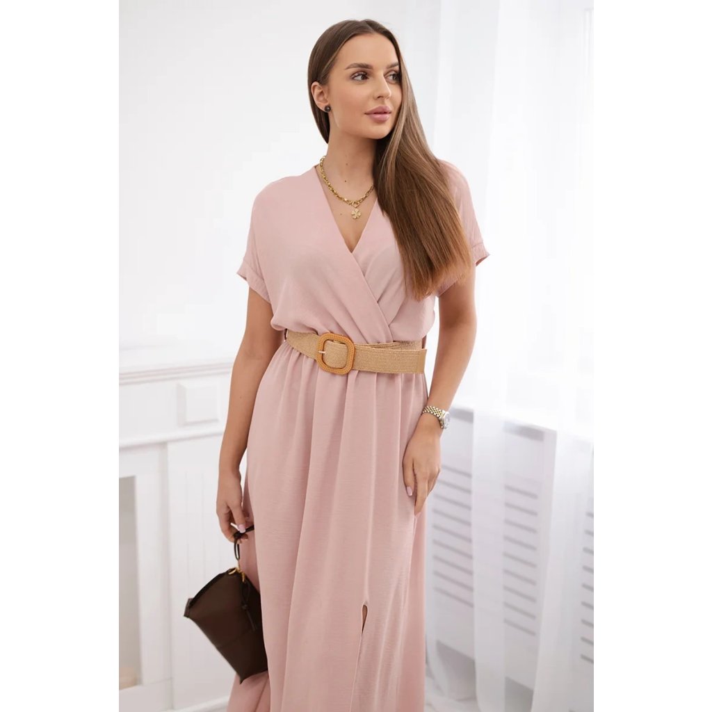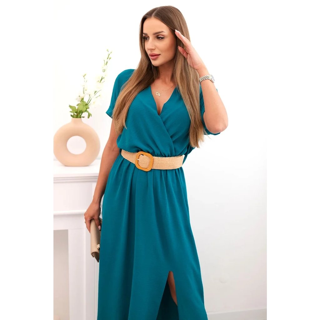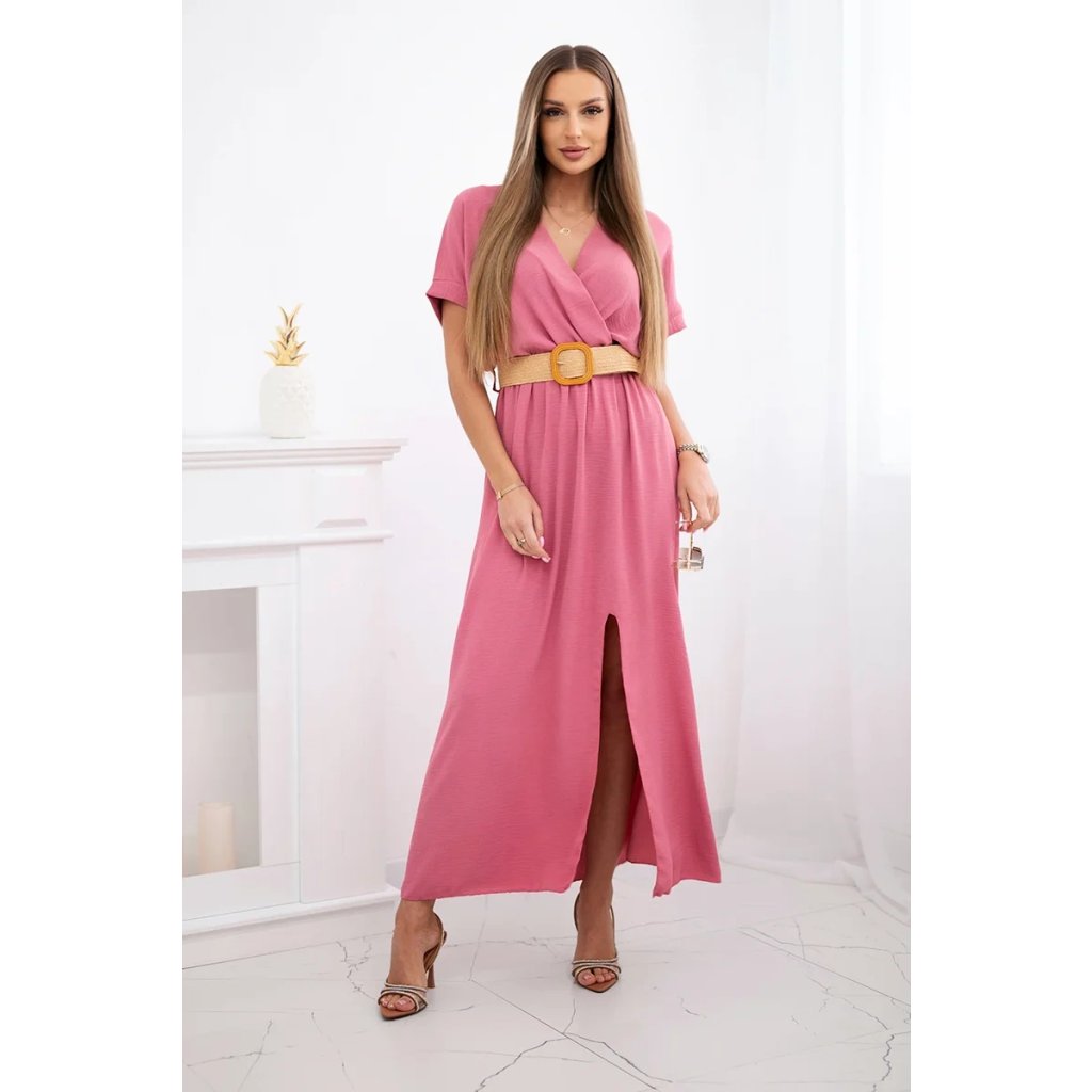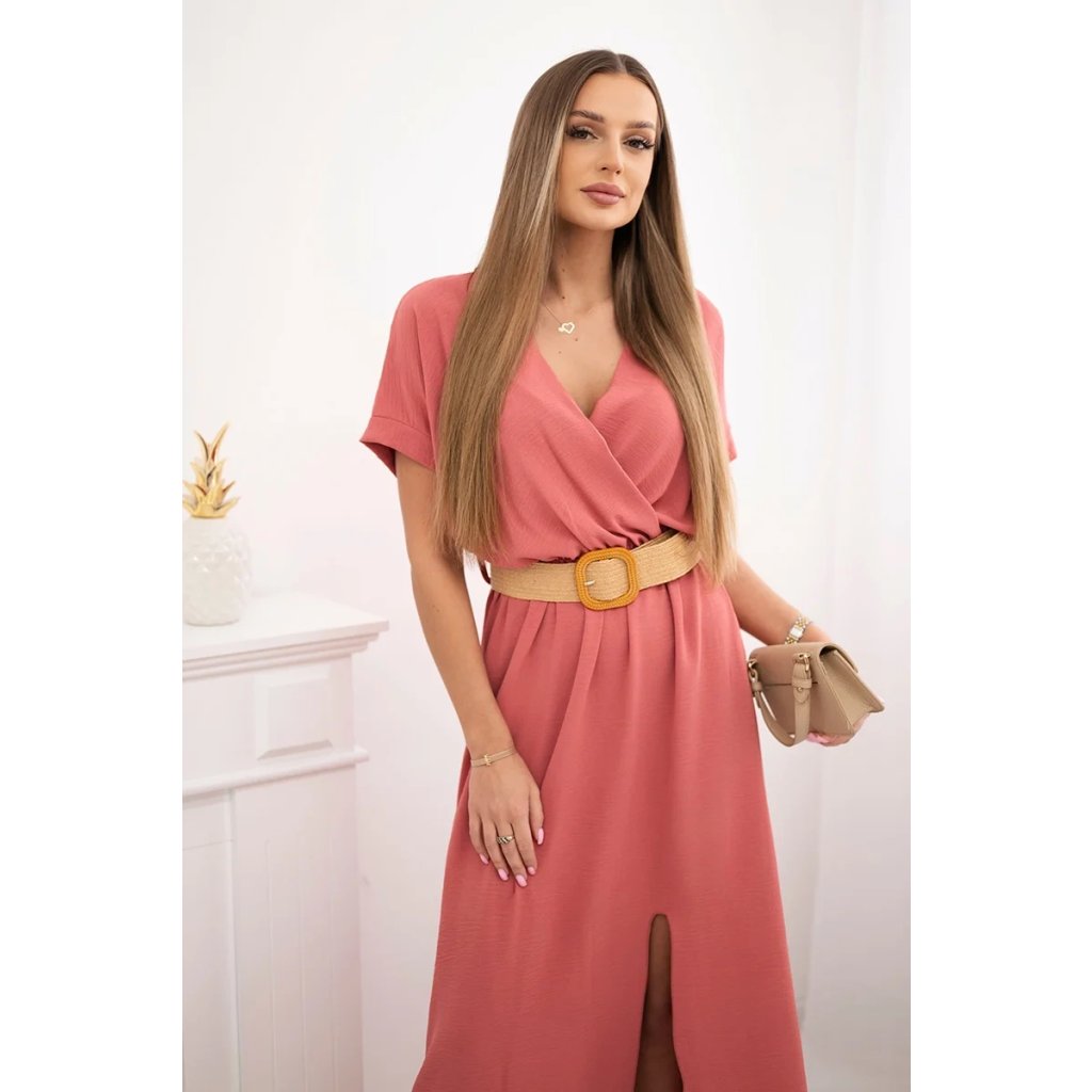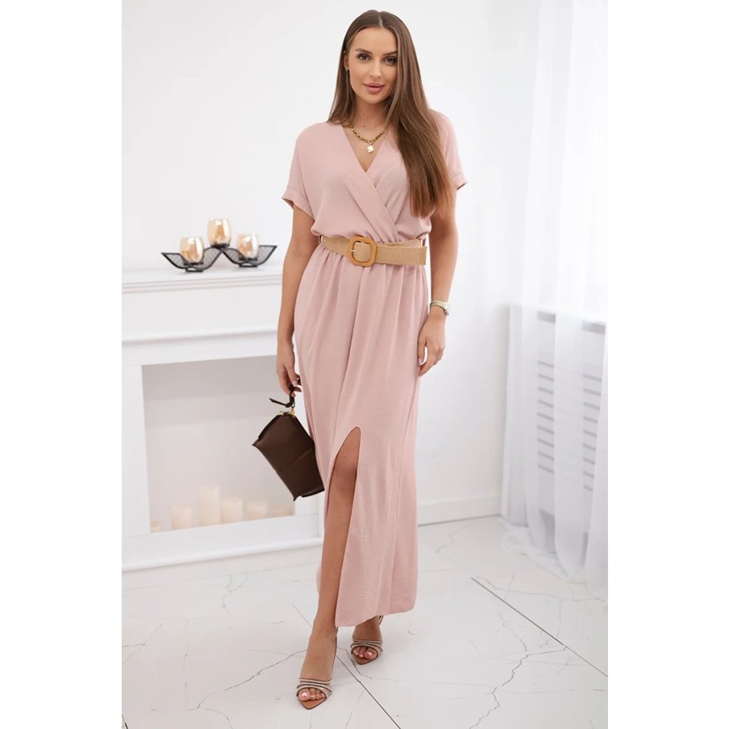 Predstavujeme vám pohodlné šaty s ozdobným opaskom. Šaty majú dole rázporky. Šaty sú vyrobené z kvalitného materiálu. Veľmi zaujímavá ponuka pre všetky dámy. Veľkosť je univerzálna a vyhovuje dámam, ktoré nosia veľkosť S, M alebo L.