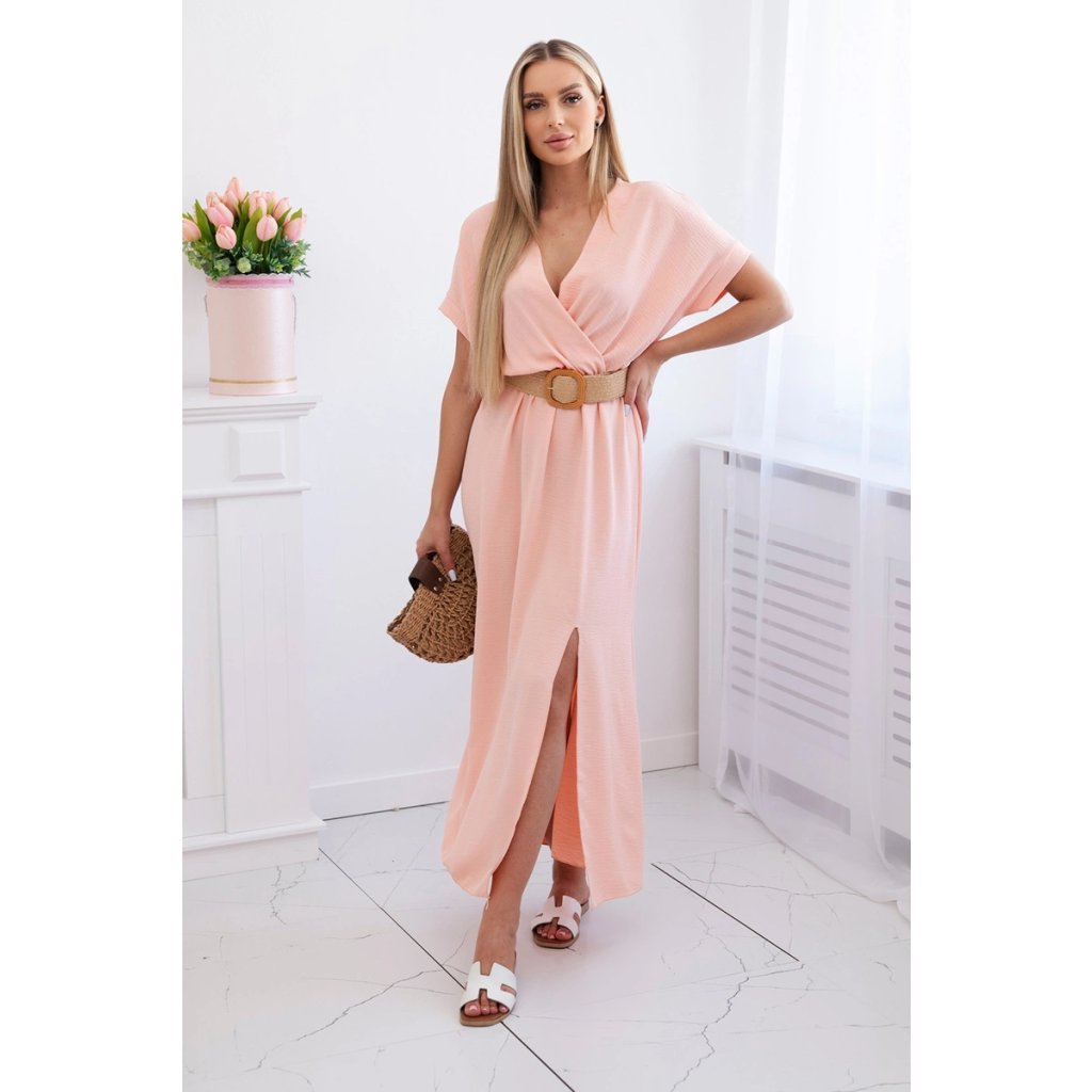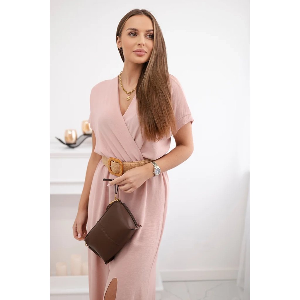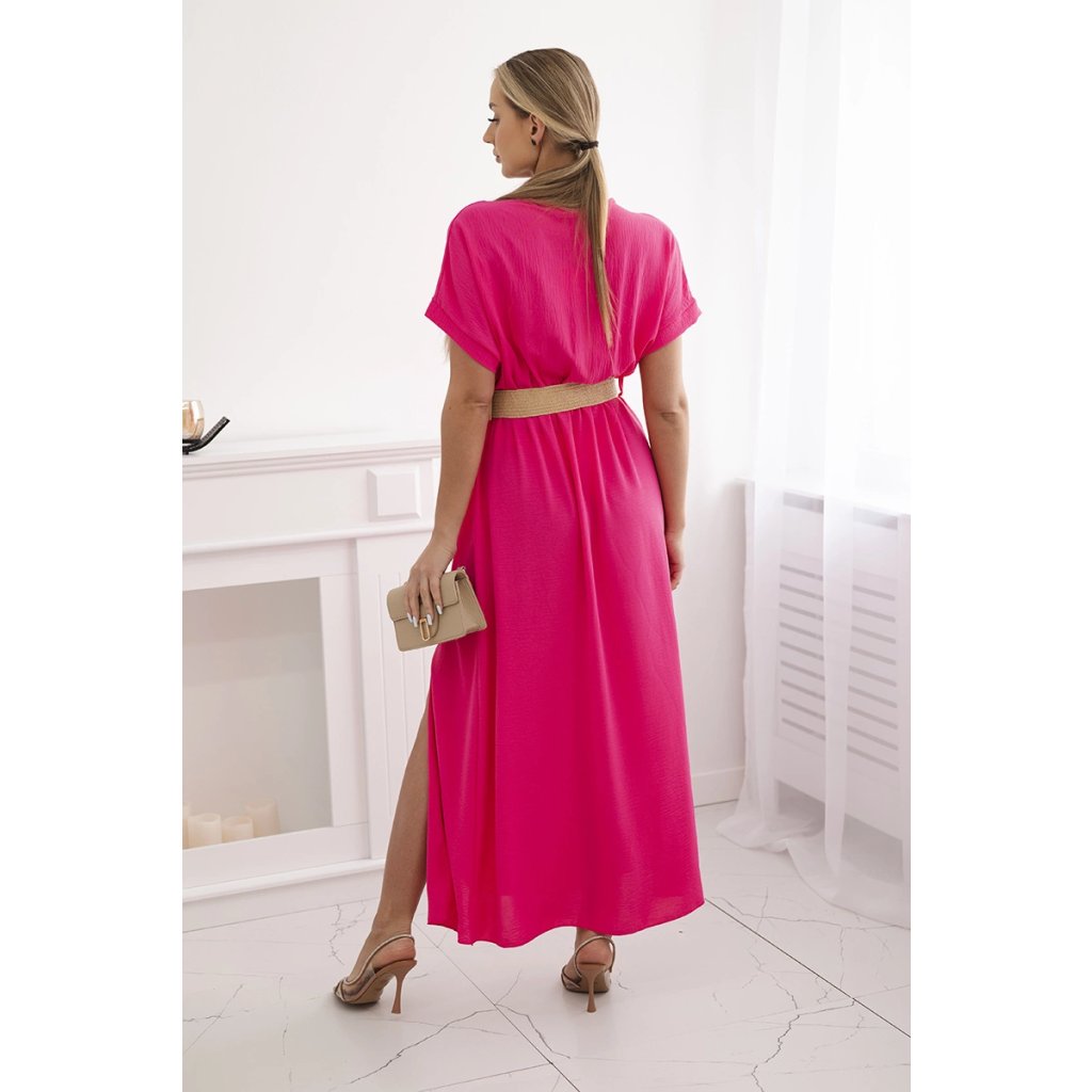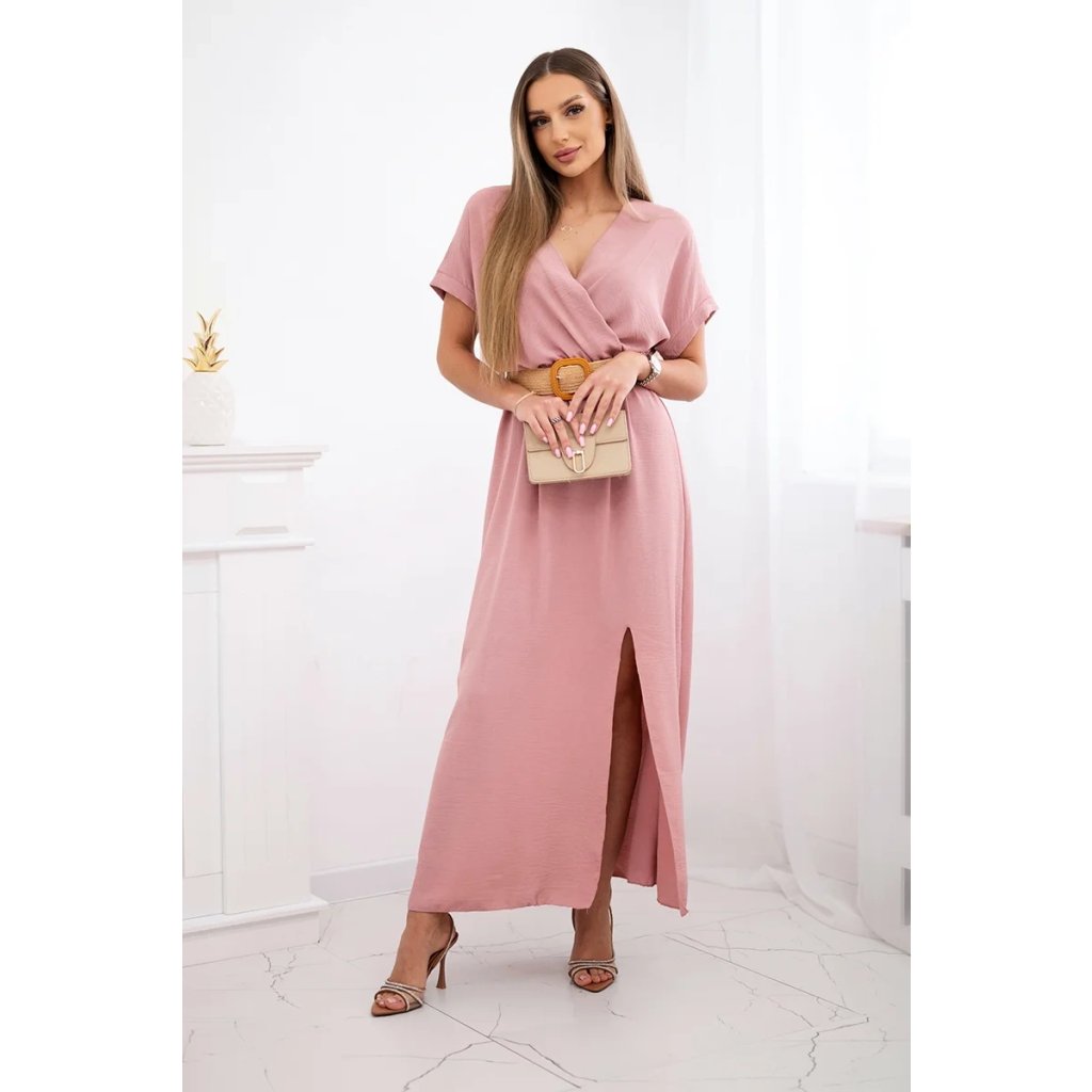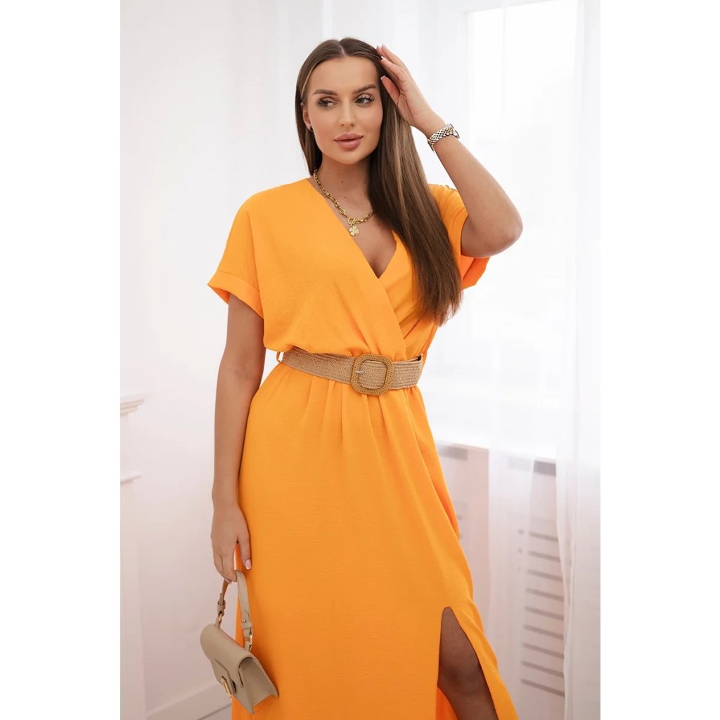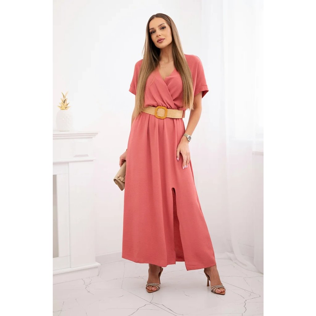 Predstavujeme vám pohodlné šaty s ozdobným opaskom. Šaty majú dole rázporky. Šaty sú vyrobené z kvalitného materiálu. Veľmi zaujímavá ponuka pre všetky dámy. Veľkosť je univerzálna a vyhovuje dámam, ktoré nosia veľkosť S, M alebo L.