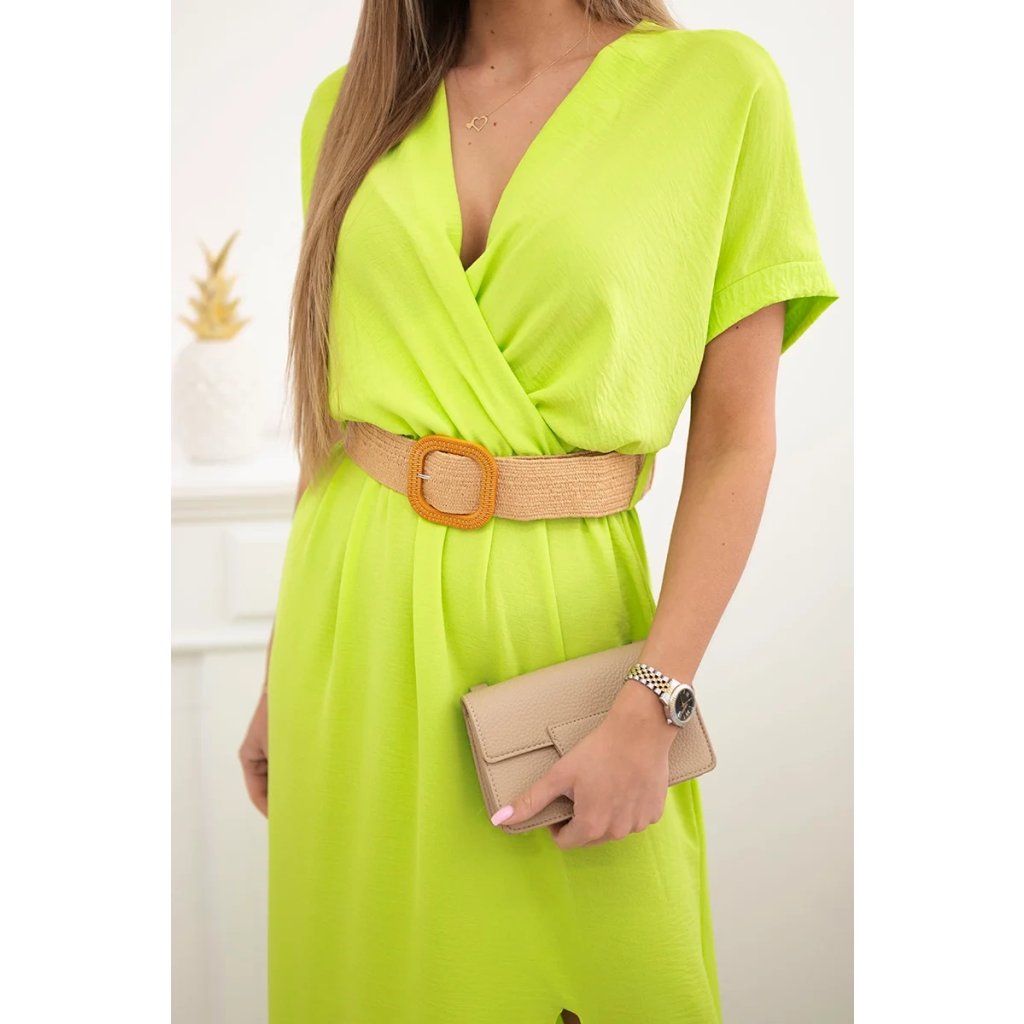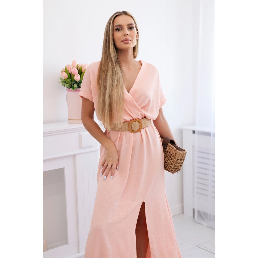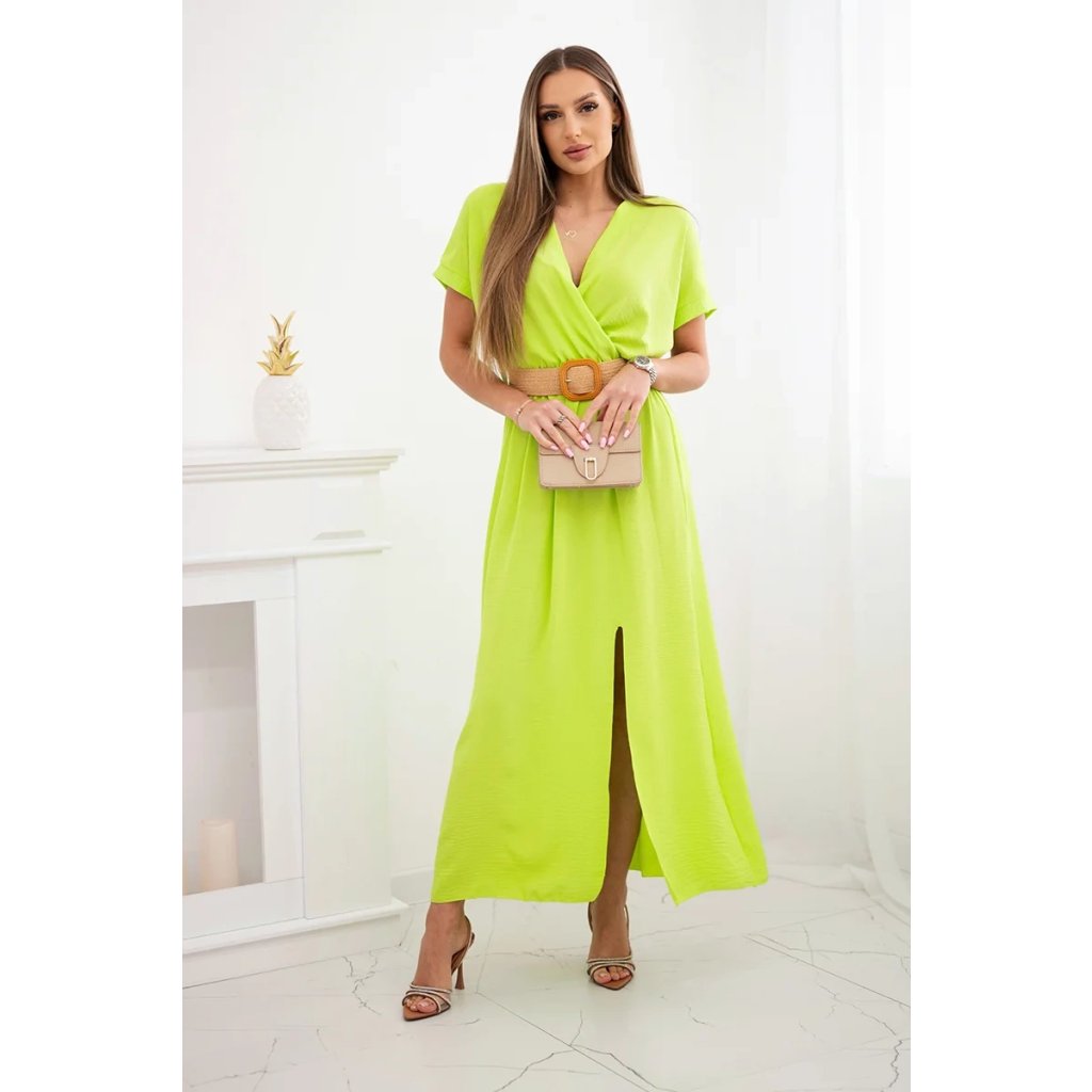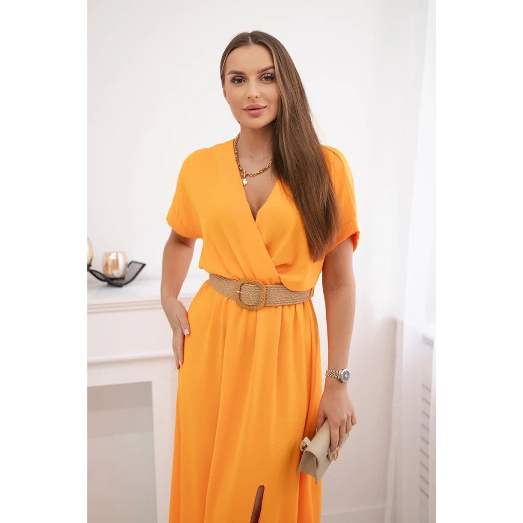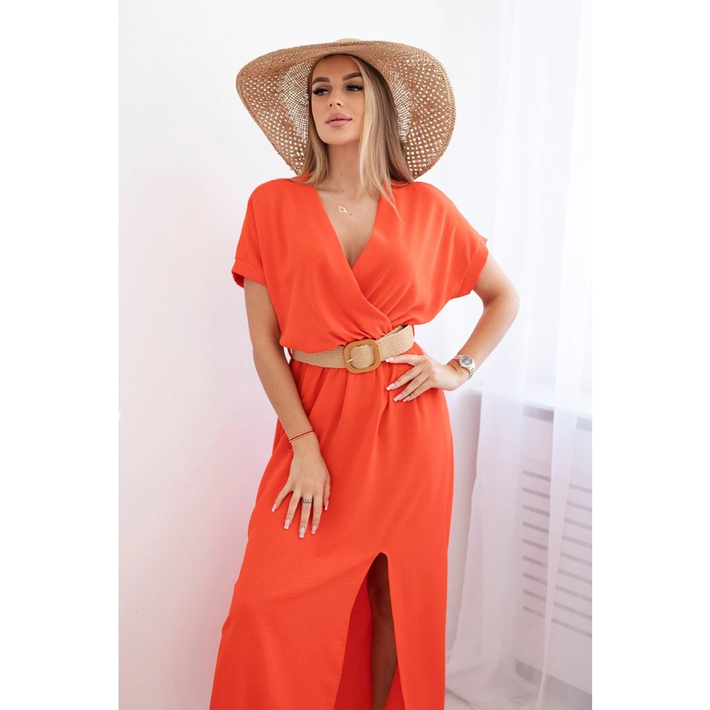 Predstavujeme vám pohodlné šaty s ozdobným opaskom. Šaty majú dole rázporky. Šaty sú vyrobené z kvalitného materiálu. Veľmi zaujímavá ponuka pre všetky dámy. Veľkosť je univerzálna a vyhovuje dámam, ktoré nosia veľkosť S, M alebo L.