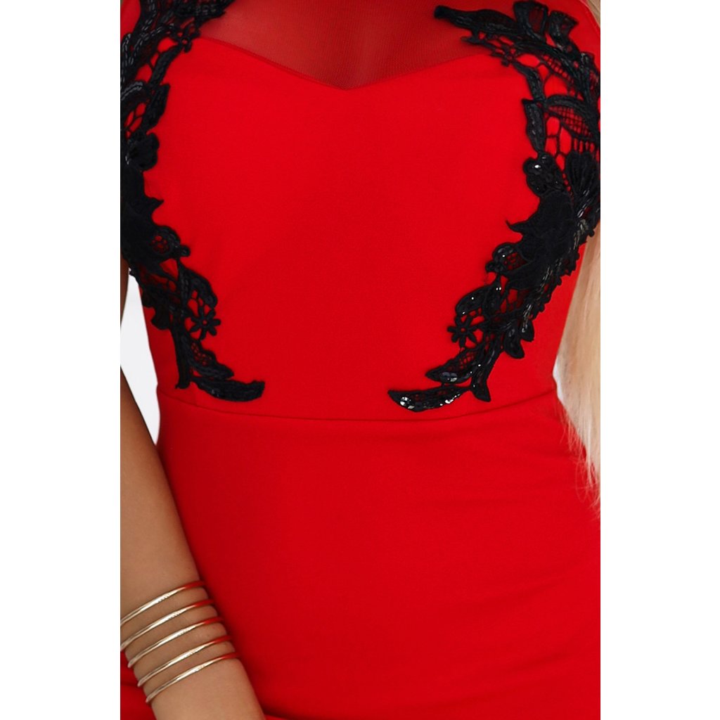 Dlhé šaty s morskou pannou s čiernou čipkou a sieťovinou - červené 617-3