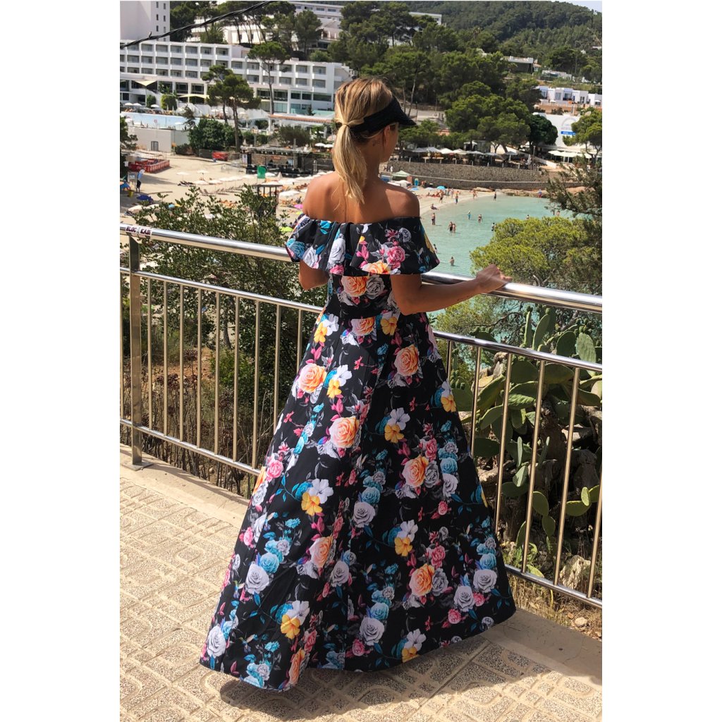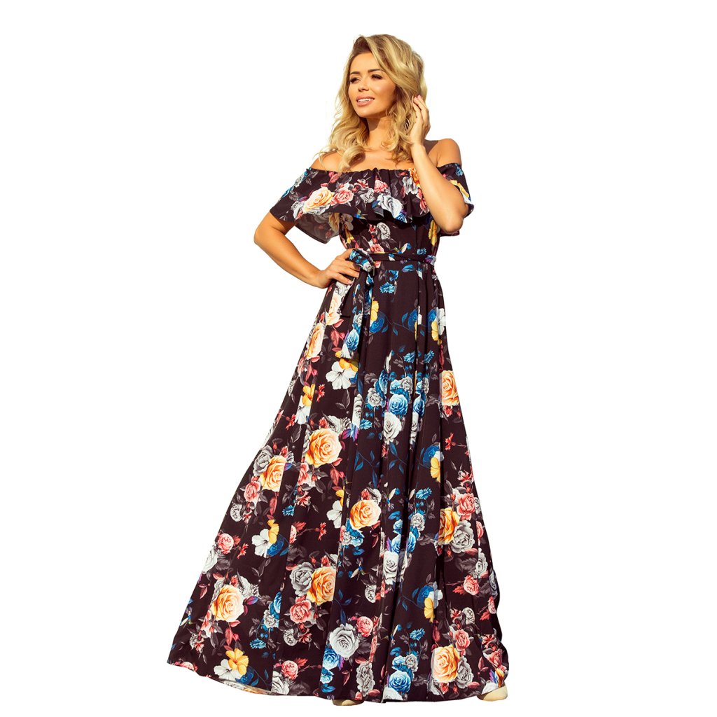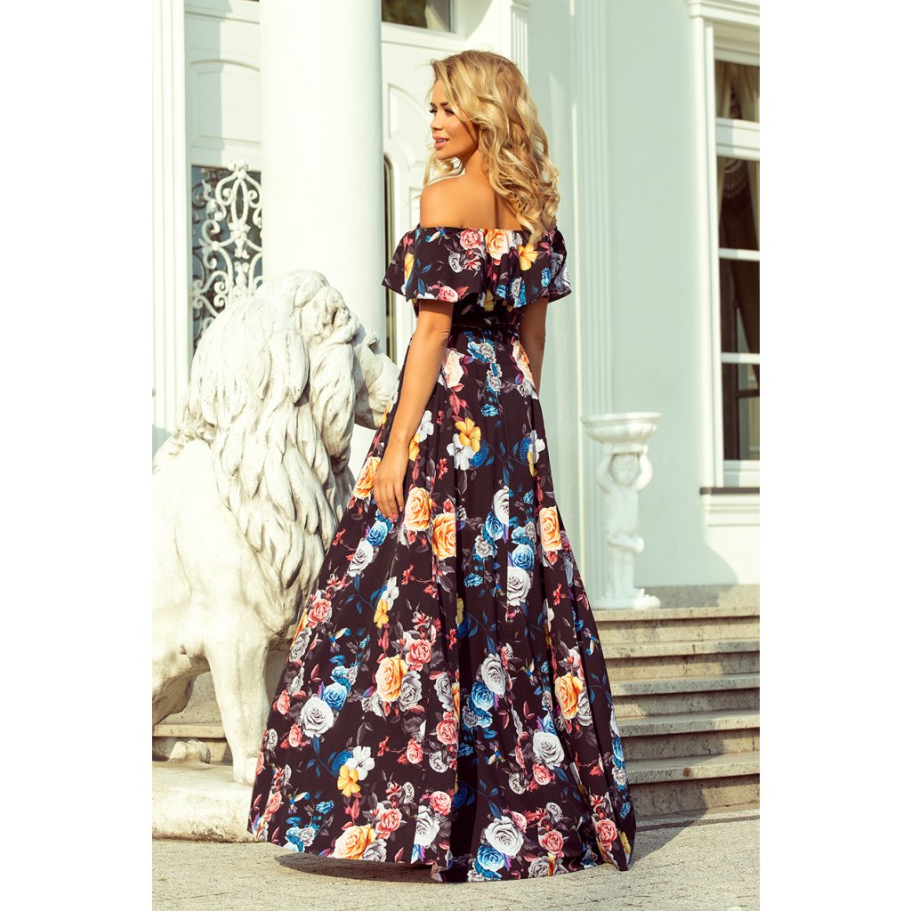 Dlhé šaty s volánom - španielčina - čierna s farebnými kvetmi. Farby kvetov sa môžu mierne líšiť. Značka numoco.