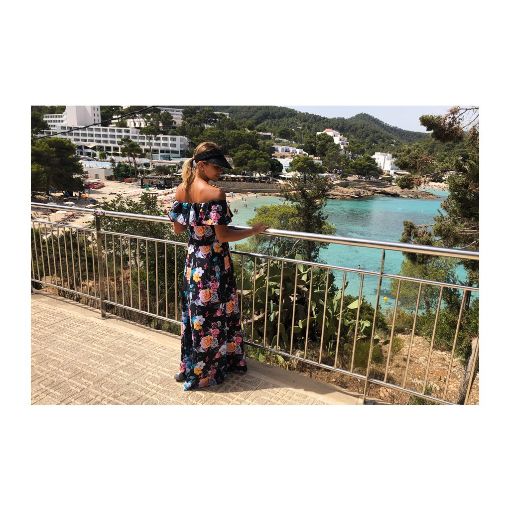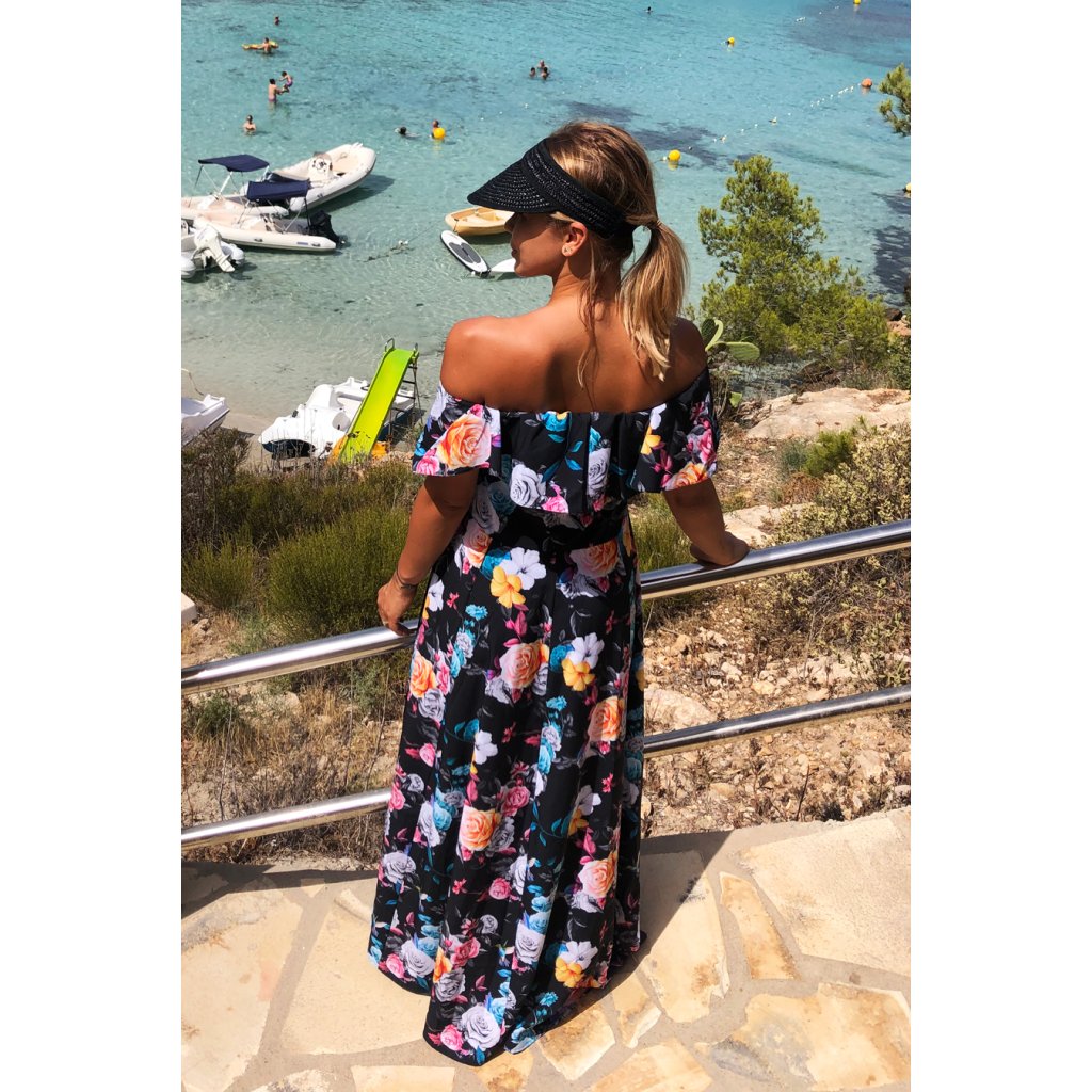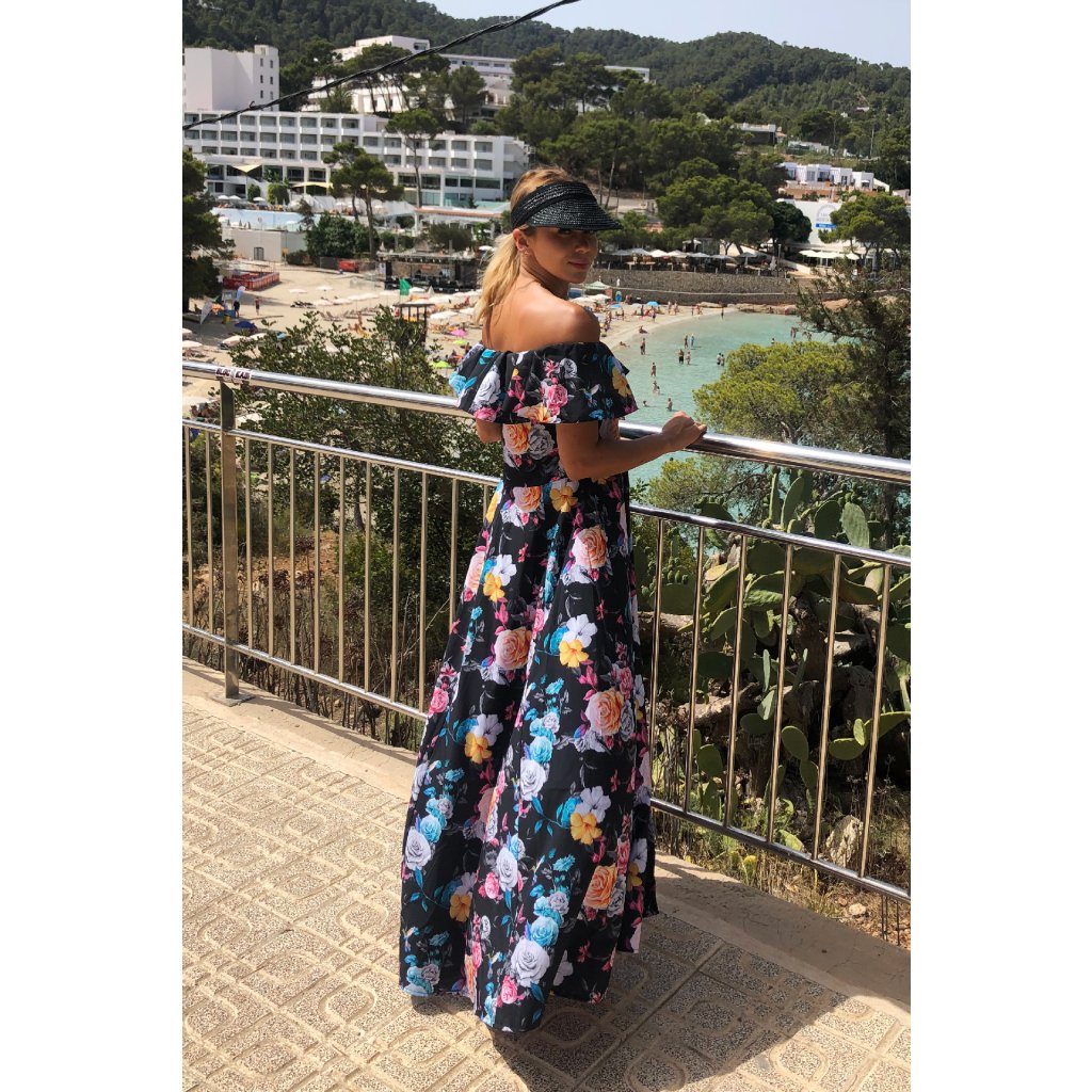Dlhé šaty s volánom - španielčina - čierna s farebnými kvetmi. Farby kvetov sa môžu mierne líšiť. Značka numoco.