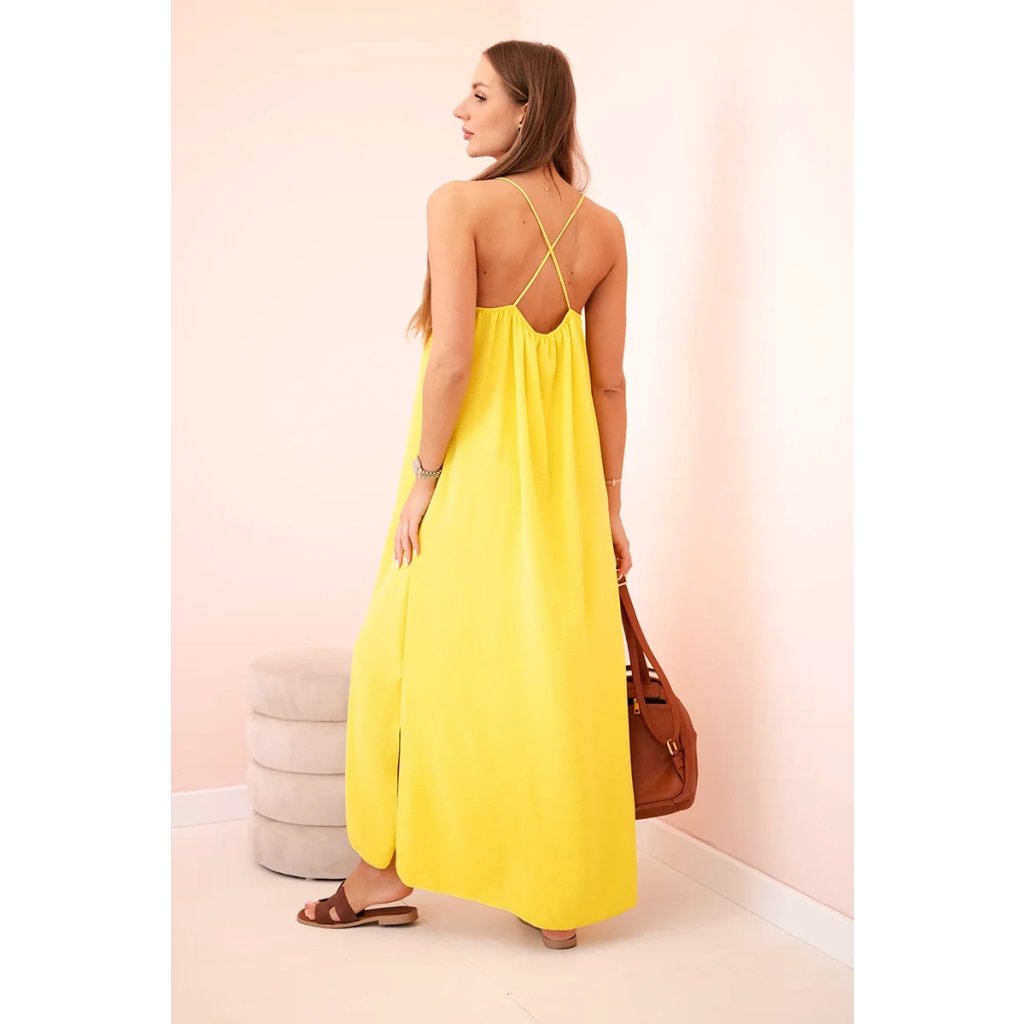 Dlhé šaty na ramienka sú elegantným a ženským kúskom oblečenia, ktorý sa dá nosiť na mnohé príležitosti. Tento typ šiat je veľmi univerzálny a môžete ho nosiť na významné príležitosti aj na každodenné vychádzky. Tieto šaty sú vyrobené z ľahkých materiálov, takže sú veľmi pohodlné na nosenie a ideálne na teplé dni. Tieto šaty sú obľúbené po celom svete a vďaka klasickému dizajnu sú vždy módne a štýlové. Veľkosť je univerzálna a je vhodná pre ženy, ktoré nosia veľkosť S, M alebo L.