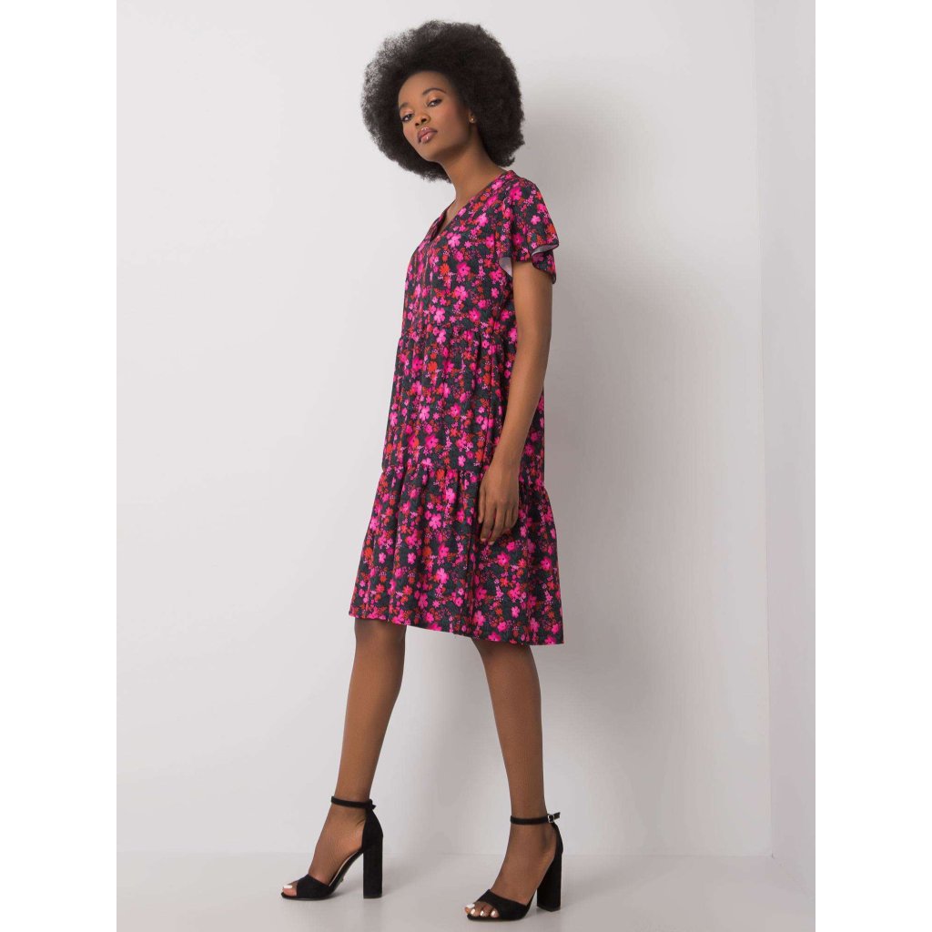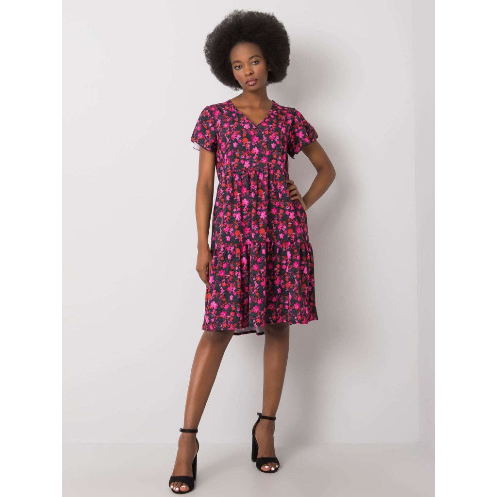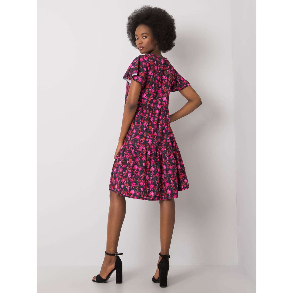 RUE PARIS Ružové šaty s potlačami a volánmi.