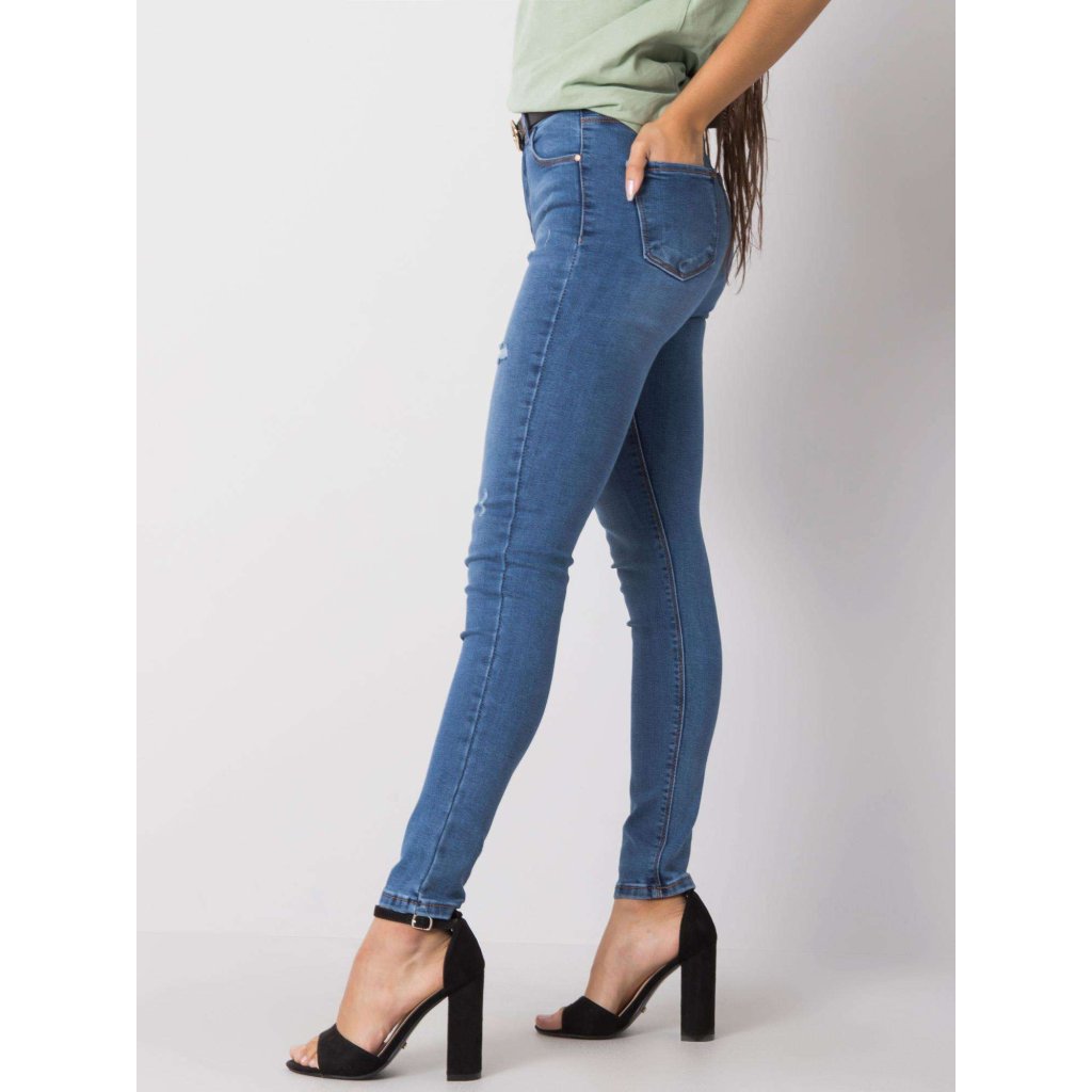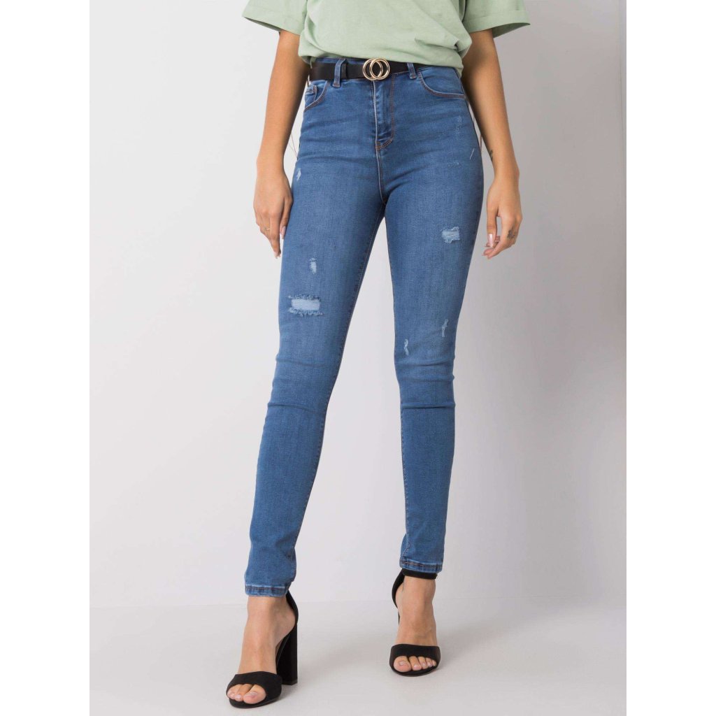 Modré úzke rifle RUE PARIS s roztrhanými dielmi.