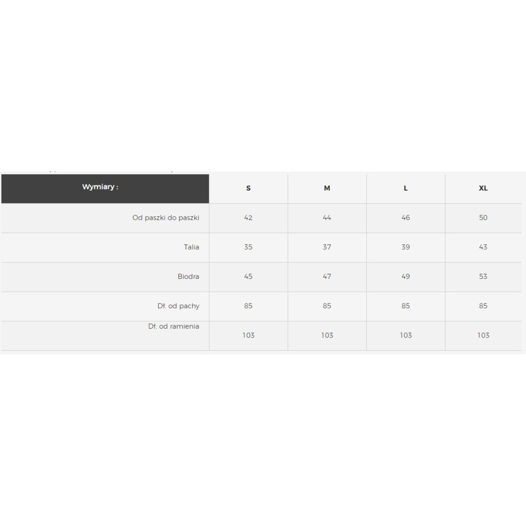 | Od podpazušia k podpazušiu | 42 | 44 | 46 | 50 | 52 |