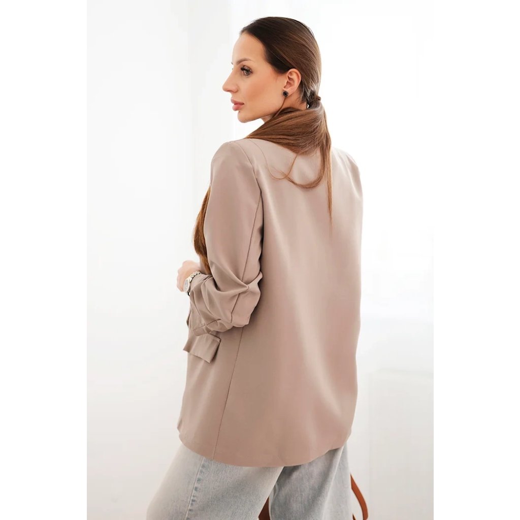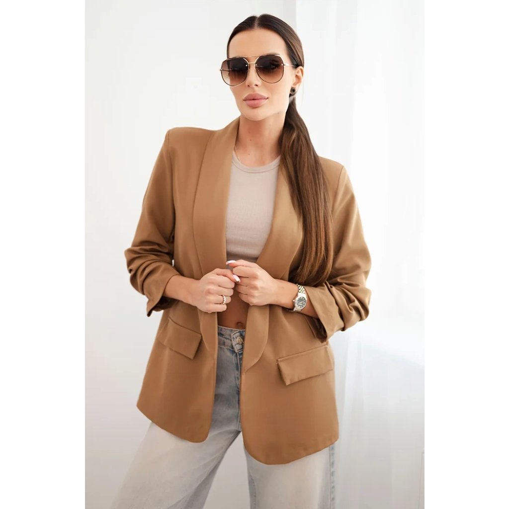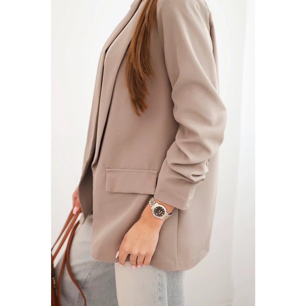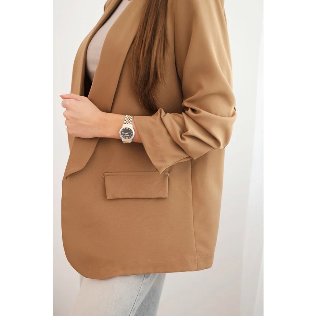 Predstavujeme vám elegantné sako. Sako bez zapínania s klopami vpredu. Tento model bude skvelou voľbou pre mnoho typov postáv, dodávajúci každému outfitu nenútenú eleganciu. Je to základ každého šatníka a prvok štylizácie pre špeciálne príležitosti - na každé ročné obdobie a na každú príležitosť. Sako je vyrobené z vysoko kvalitného materiálu. Sako má podšívku. Veľkosť je univerzálna a bude vhodná pre dámy vo veľkosti S, M a L.