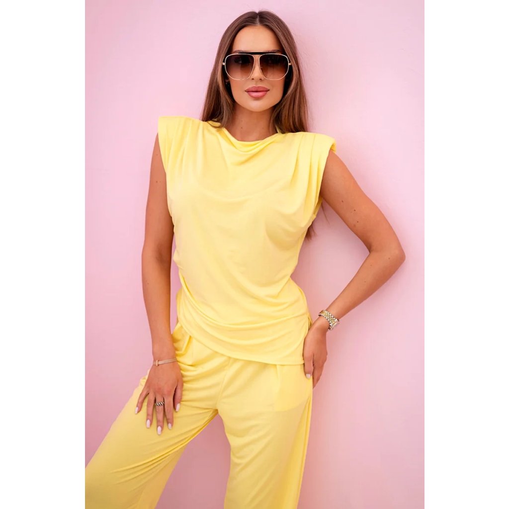 Táto štýlová dámska súprava je ideálnou voľbou pre ženy, ktoré oceňujú eleganciu a pohodlie. Súpravu tvorí voľná blúzka s jemným riasením na boku a nohavice so širokými nohavicami, ktoré krásne sedia na postave. Je vyrobená z ľahkého a pohodlného materiálu a poskytuje pohodlie po celý deň. Vďaka elastickému pásu sa nohavice dokonale prispôsobia telu. Skvelá voľba na elegantné výlety, stretnutia alebo každodenný štýl. Veľkosť je univerzálna a hodí sa pre ženy veľkosti S, M alebo L.
