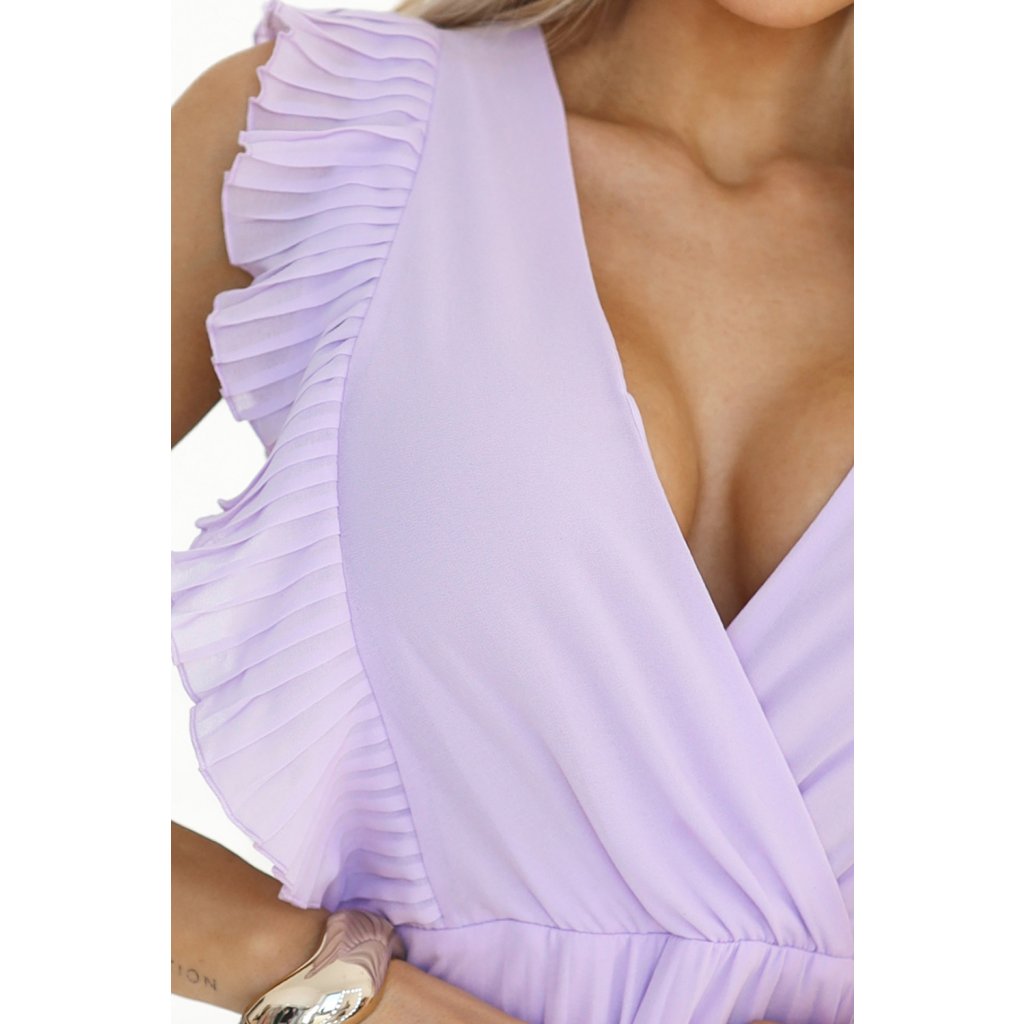 EMILY Plisované šaty s volánmi a výstrihom - vresová farba 315-7