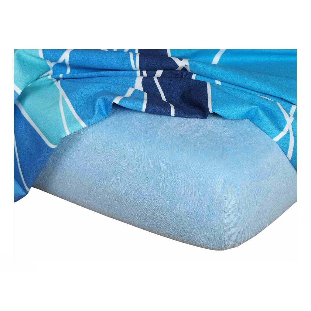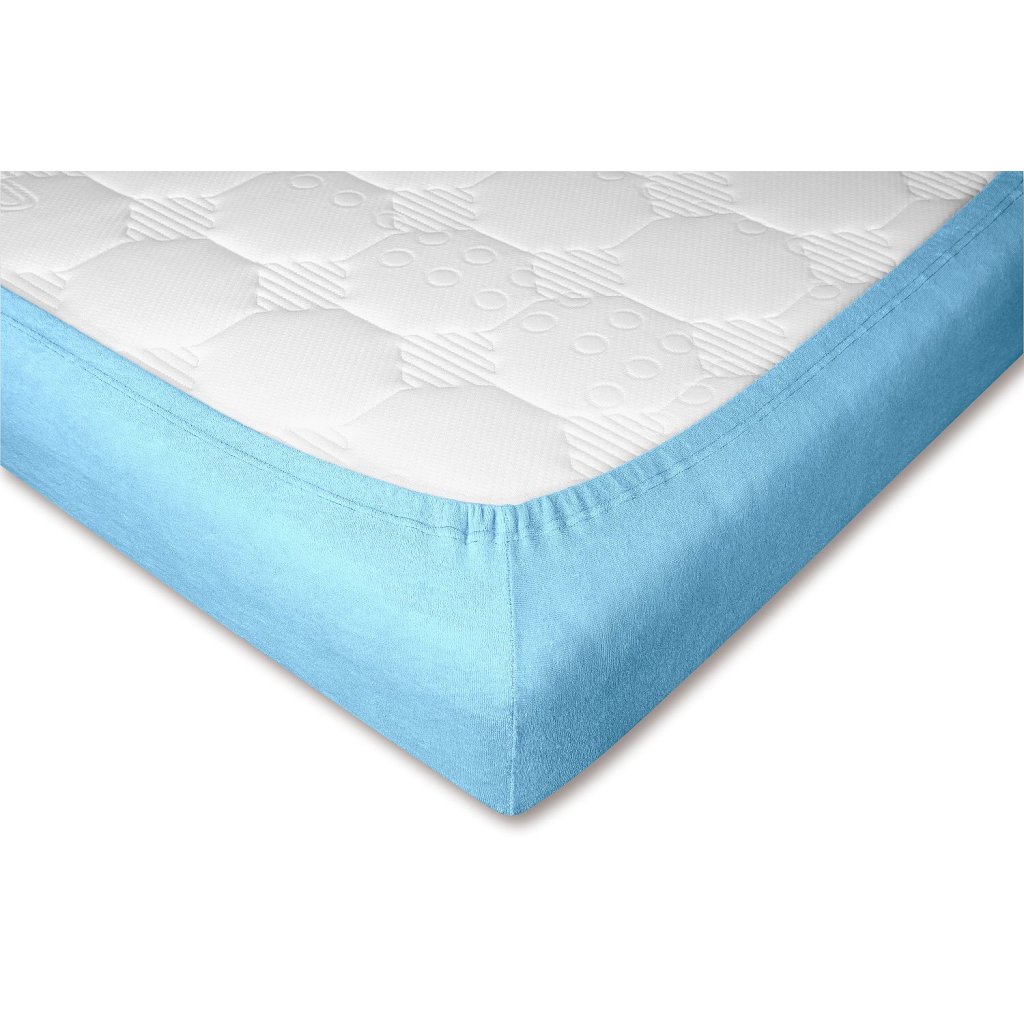Svetlomodrá froté plachta prináša pocit sviežosti a pokoja. Skvele ladí s bielym, sivým alebo tmavomodrým obliečkami. Obľúbené do spální, detských izieb aj ubytovacích zariadení.