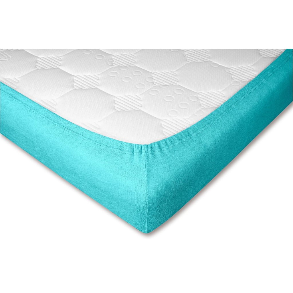 Froté prestieradlo vo svetlom tyrkysovom odtieni pôsobí osviežujúcim a moderným dojmom. Krásne sa hodí k bielemu, šedému aj pastelovému obliečky. Perfektná voľba pre štýlové spálne a penzióny.