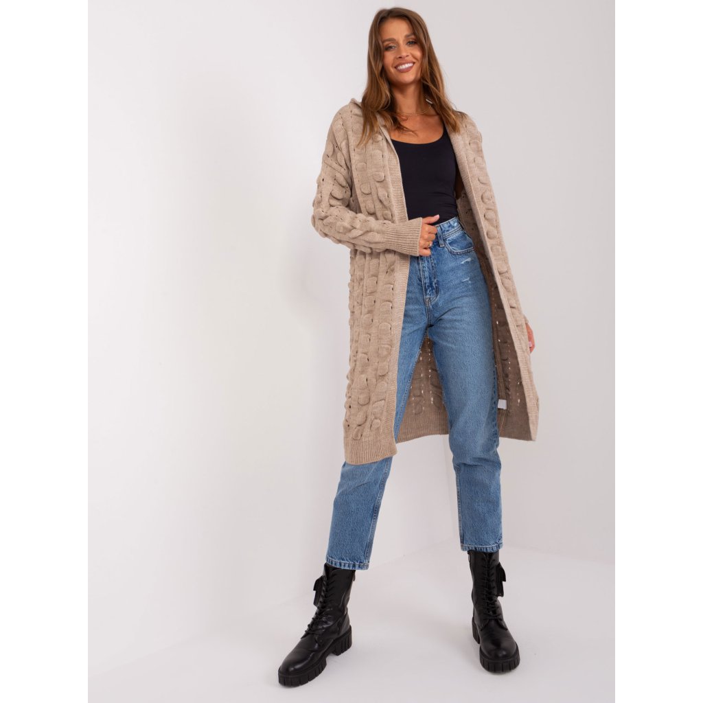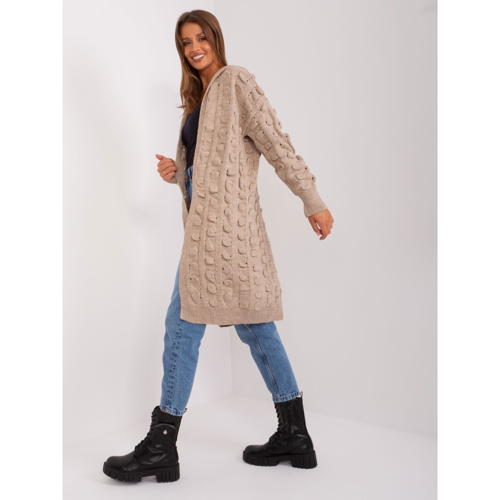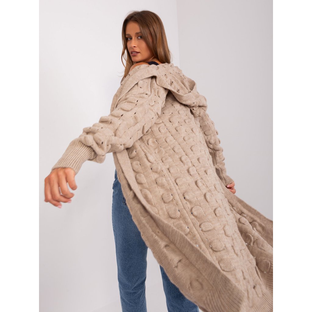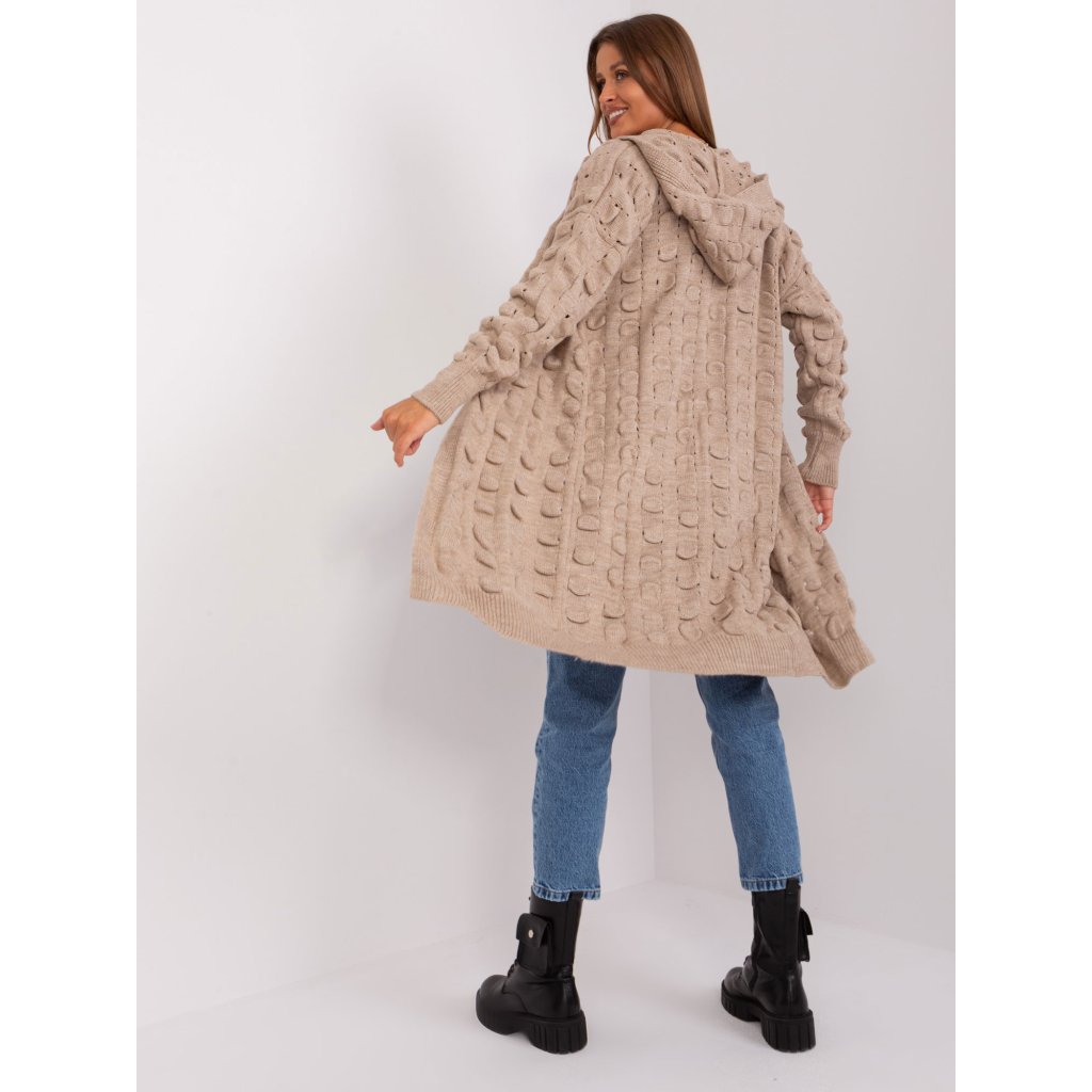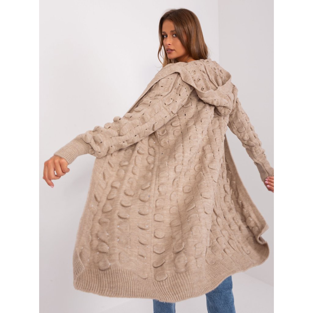 Miery kardiganu vo veľkosti jedna, merané v plochom stave: podpazušie - 70 cm, dĺžka rukávu - 60 cm, celková dĺžka - 107 cm.